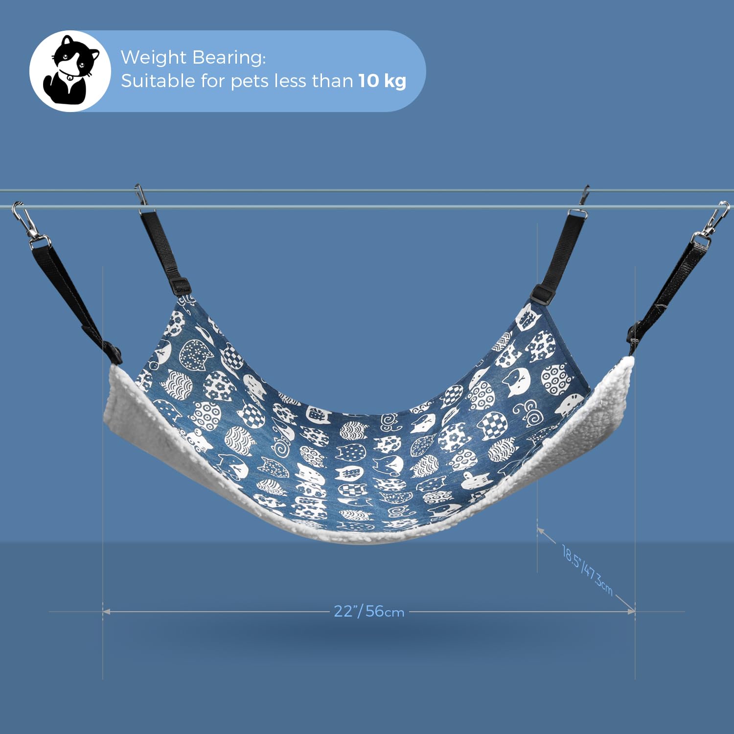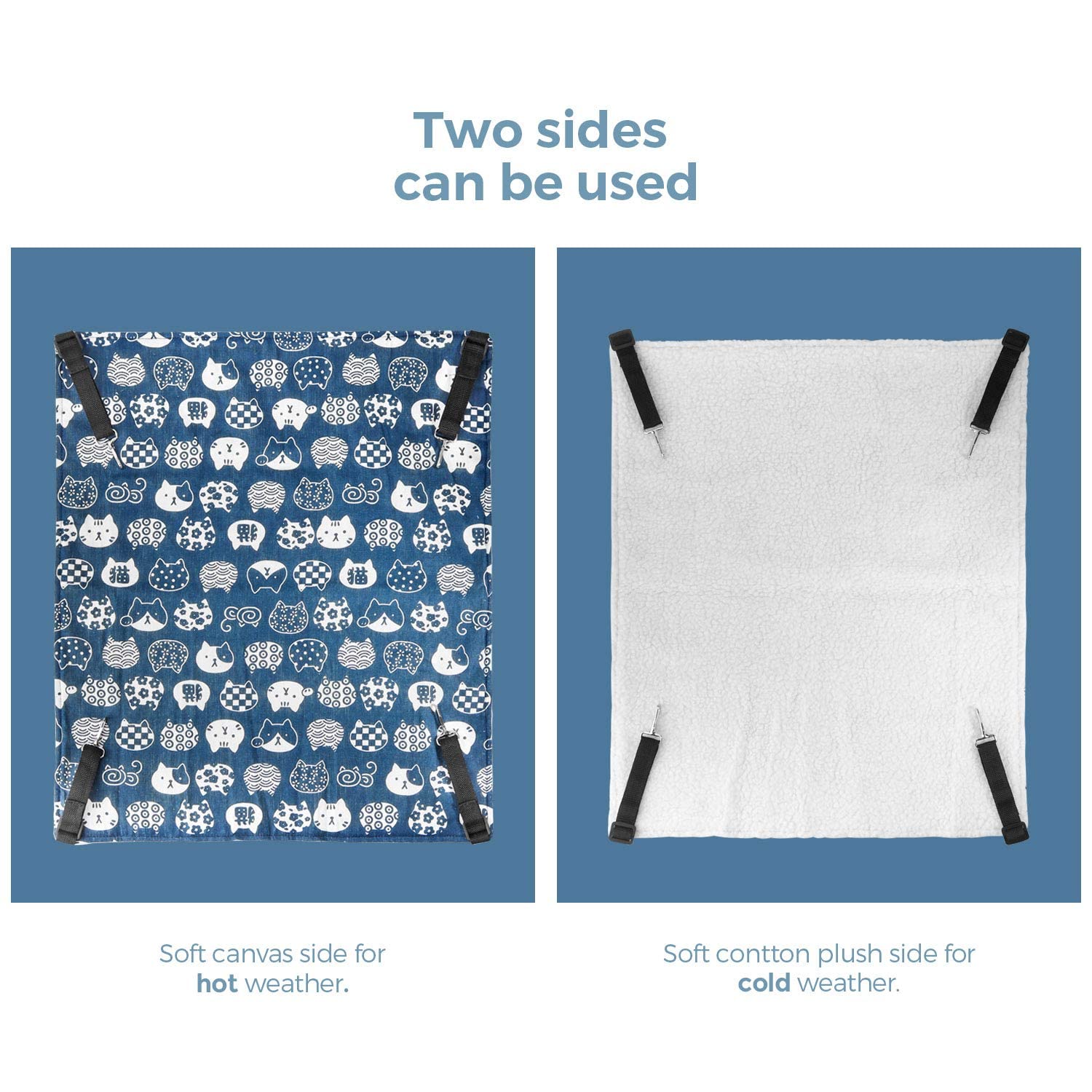 ComSaf 猫 ハンモック ベット ゲージ用 昼寝 夏冬両用 ヒモ調整可能 耐荷重10KG 56x48cm 子猫成猫適用 (ブルー猫)