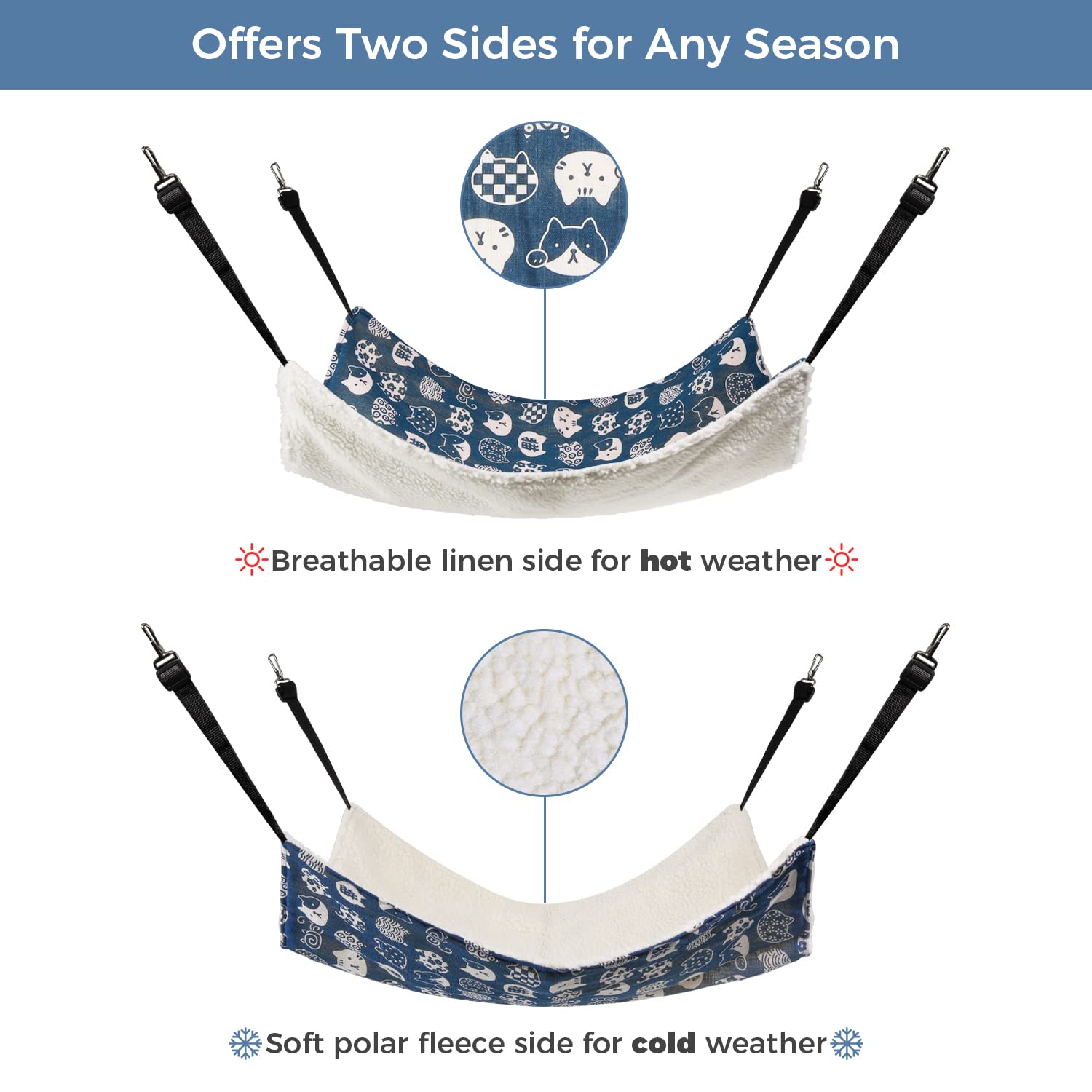 【在庫処分】ComSaf 猫 ハンモック ベット ゲージ用 昼寝 夏冬両用 ヒモ調整可能 耐荷重10KG 56x48cm 子猫成猫適用 (ブルー猫)