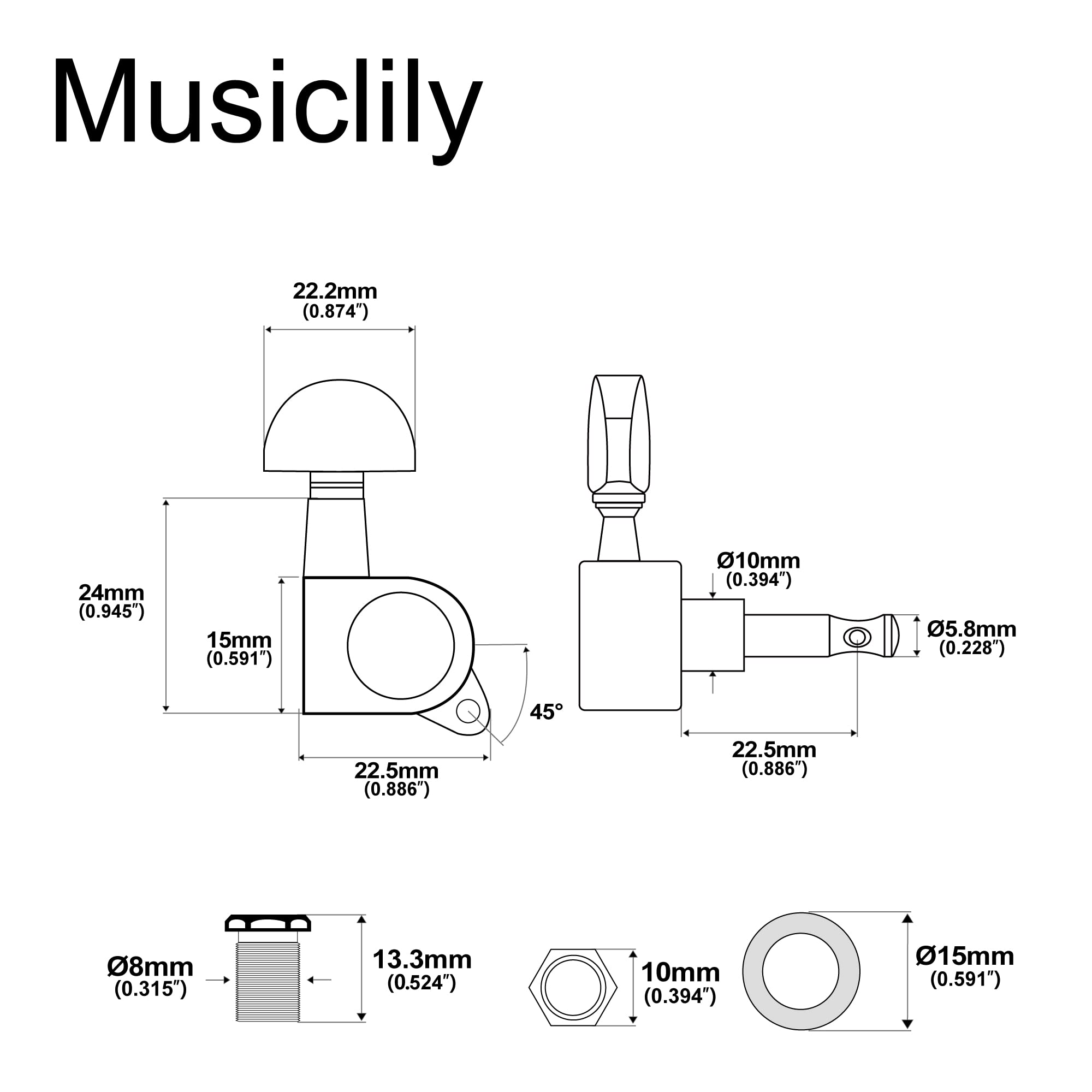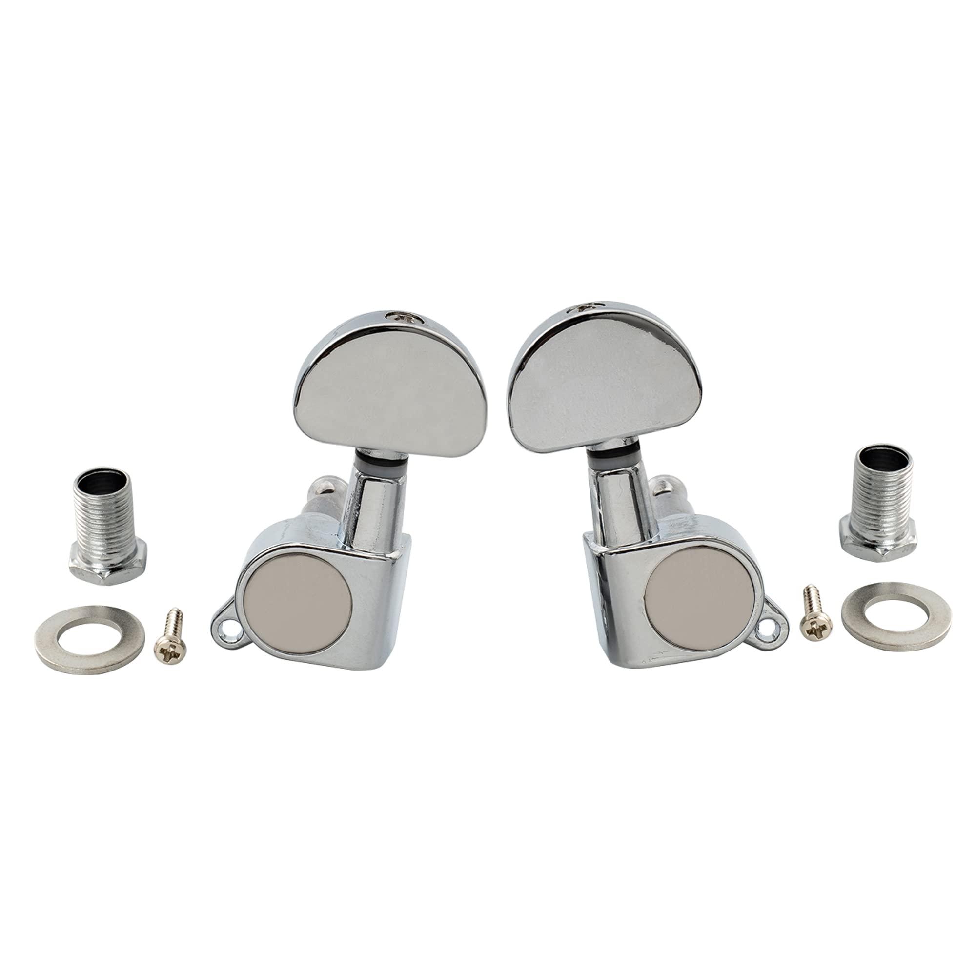 Musiclily 3対3ギター用ペグ 、クロム/ハーフムーンボタン エレクトリックギター/アコースティックギター用 ペグ取付穴10mm 材質:金属合金;ギア比15:1 3対3;ナット / ワッシャー / ビス付 パッケージ内容:6個セット(3対3)