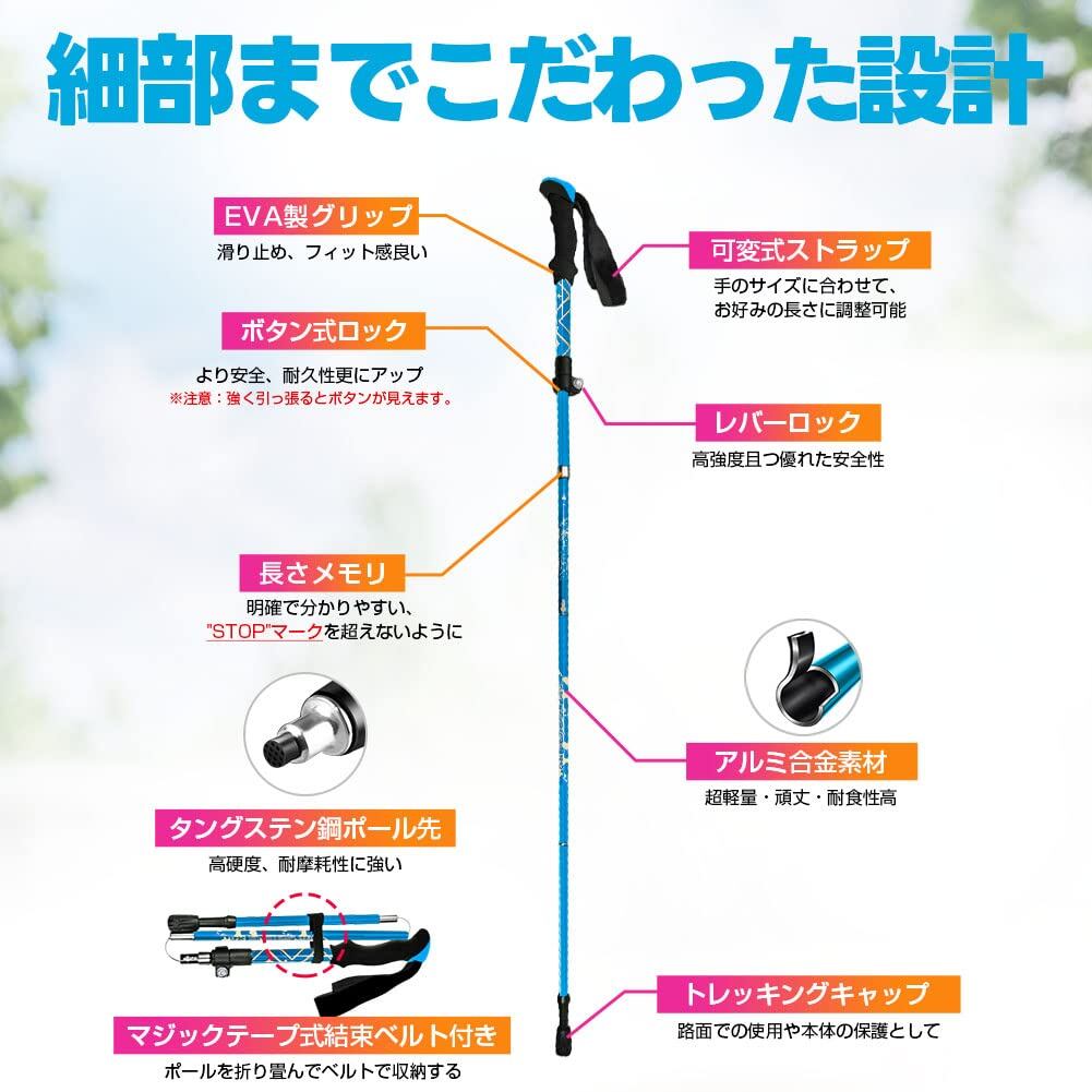 【多途用】登山だけでなく、日常生活でもステッキとして利用出来ます。ウォーキング、旅行、ハイキング、山登り、お出かけ、お年寄りの歩行補助、トレーニング、エクササイズに幅広く使われています。 品質:品質期間はお買い上げ日から1年間です。万が一、期間内で不明点や不具合がございましたら、いつでもお気軽に当社までご連絡ください。最も早い営業日に返信させて頂きます。