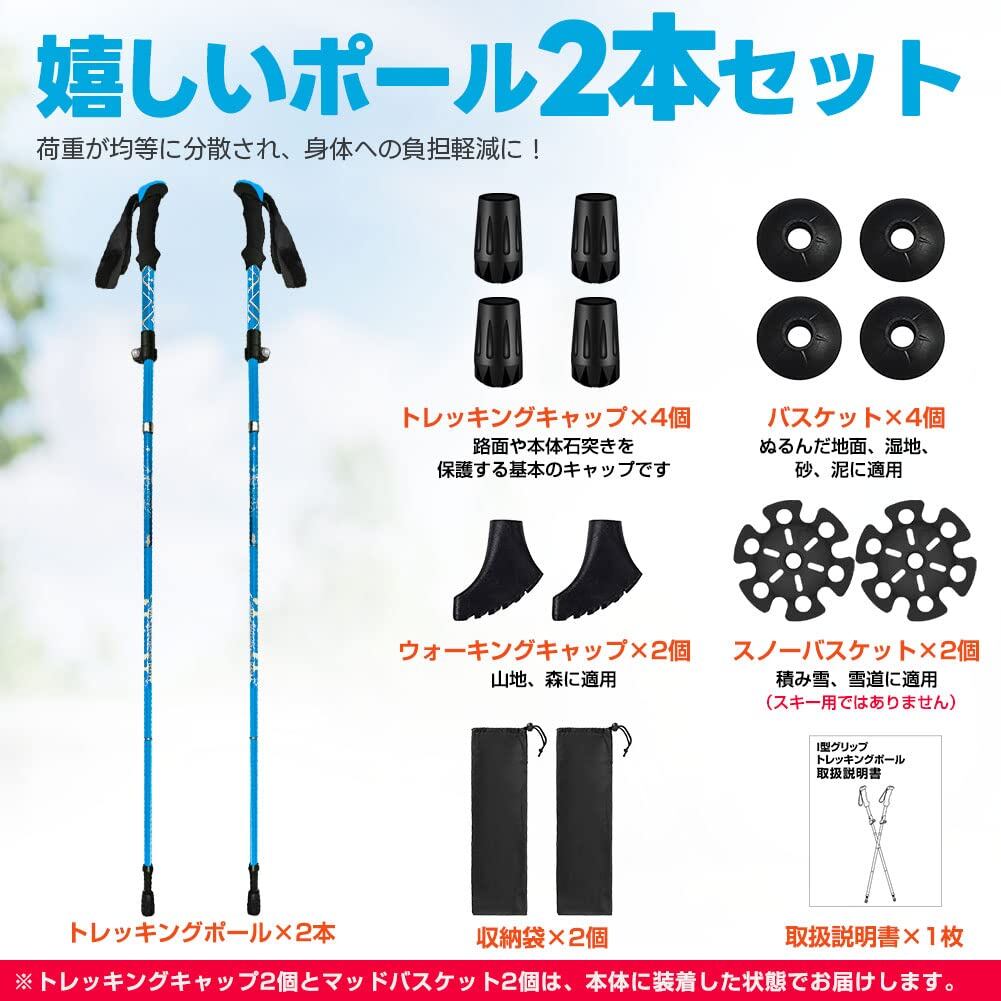 ■製品内容:トレッキングポール×2、収納袋×2、トレッキングキャップ×2、バスケット×2、取扱説明書×1