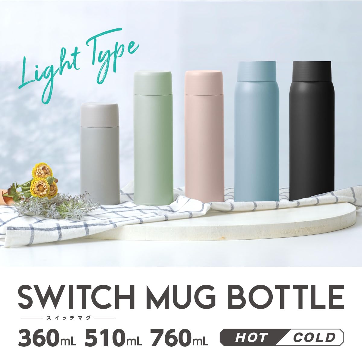 アトラス 水筒 360ml 保温 保冷 真空断熱 ステンレス 軽量 スクリューボトル マグボトル 氷止め付き 広口 洗いやすい スイッチマグ グレー 白湯 AS-361GY