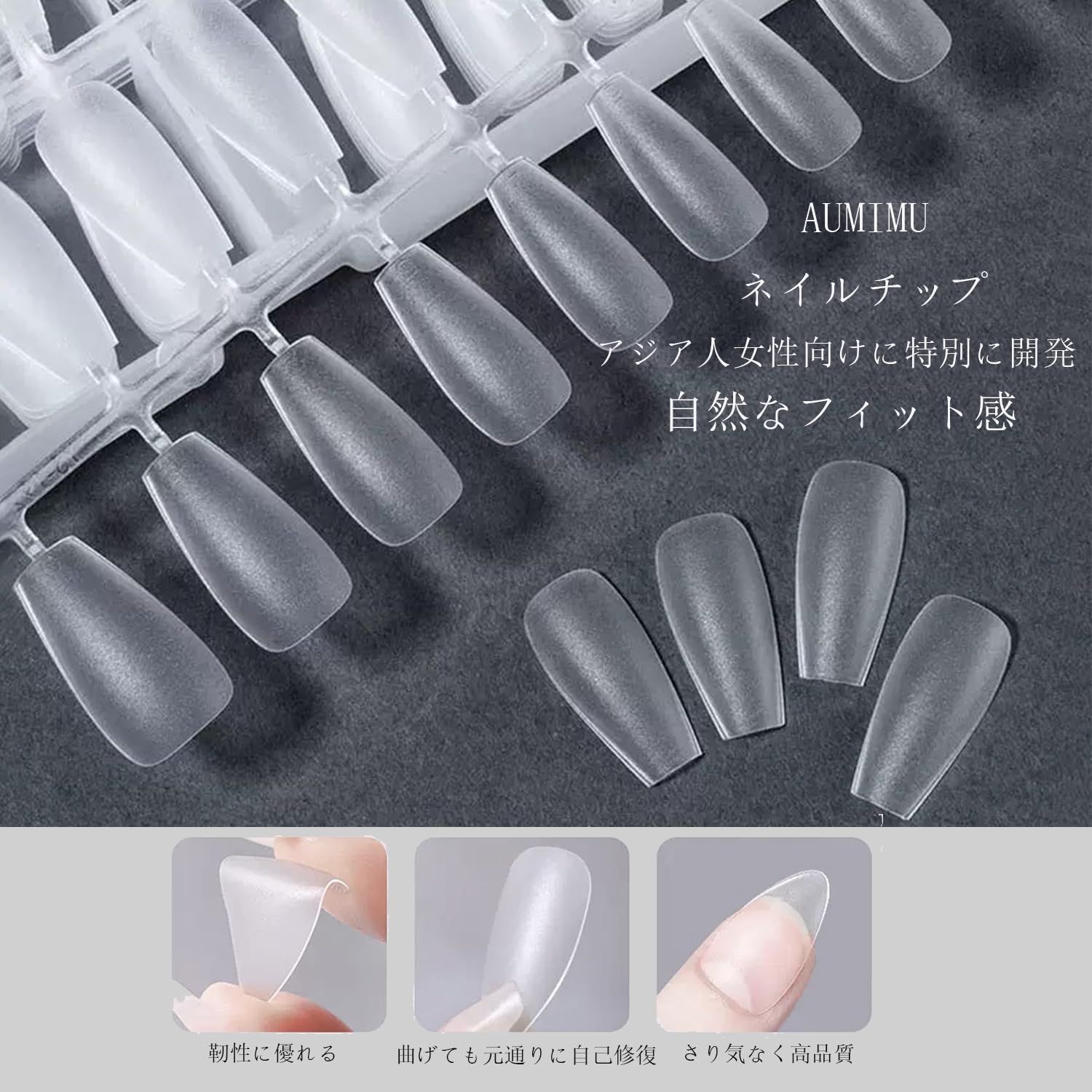 【自然なフィット感で指先を彩る】超薄型後端部(0.15mm)で自然なフィット感を実現。サンディング加工済みで、面倒な手間を省いてジェルを塗っても剥がれにくい。爪先にサイズ番号が付いており、簡単に自分の爪に合ったチップを見つけることができます。 【高品質素材で美しい仕上がり】高強度かつ強靭性のあるソフトアクリル素材を使用。曲げても折れ曲がらず、自己修復性に優れています。つや消しの表面が爪と一体感を生み出し、ジェルのりも良好。
