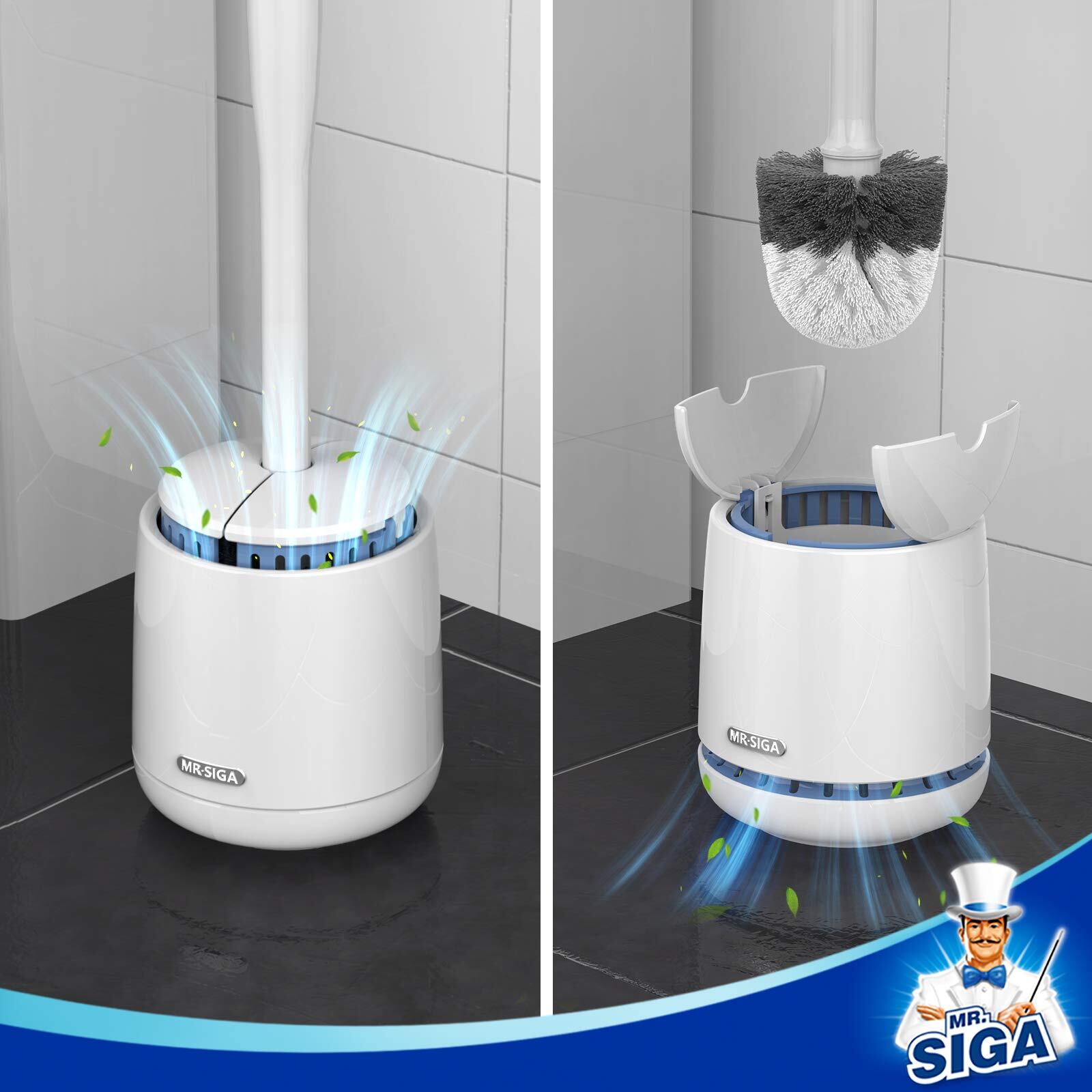 MR.SIGA トイレブラシ 収納ケース付き 丈夫なハンドルと耐久性のある剛毛付きバスルーム掃除、ホワイト、1セット