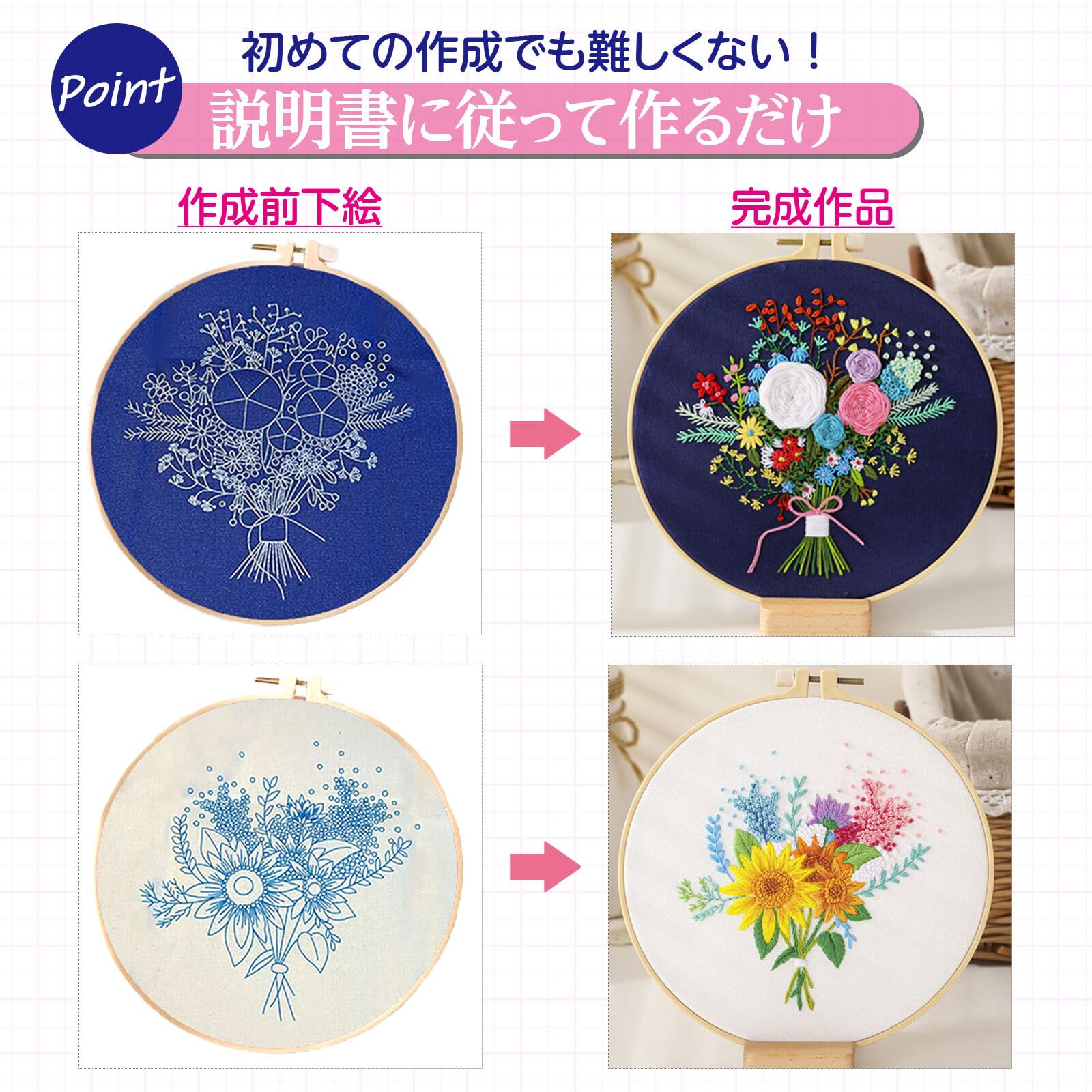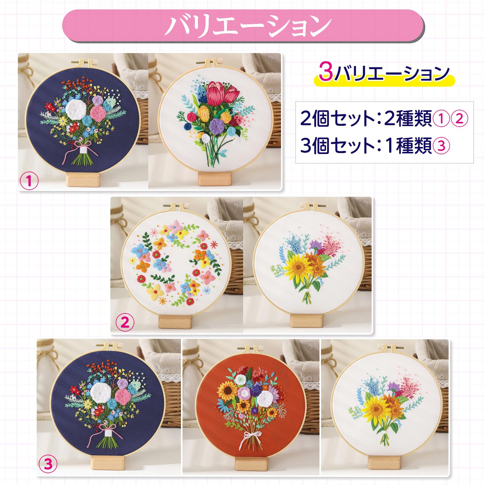 pikake bay 刺繍キット 刺繍糸 刺繍枠 刺繍針 DIY クロスステッチ 初心者 セット 花 フランス刺繍 英語説明書付き(2セット)