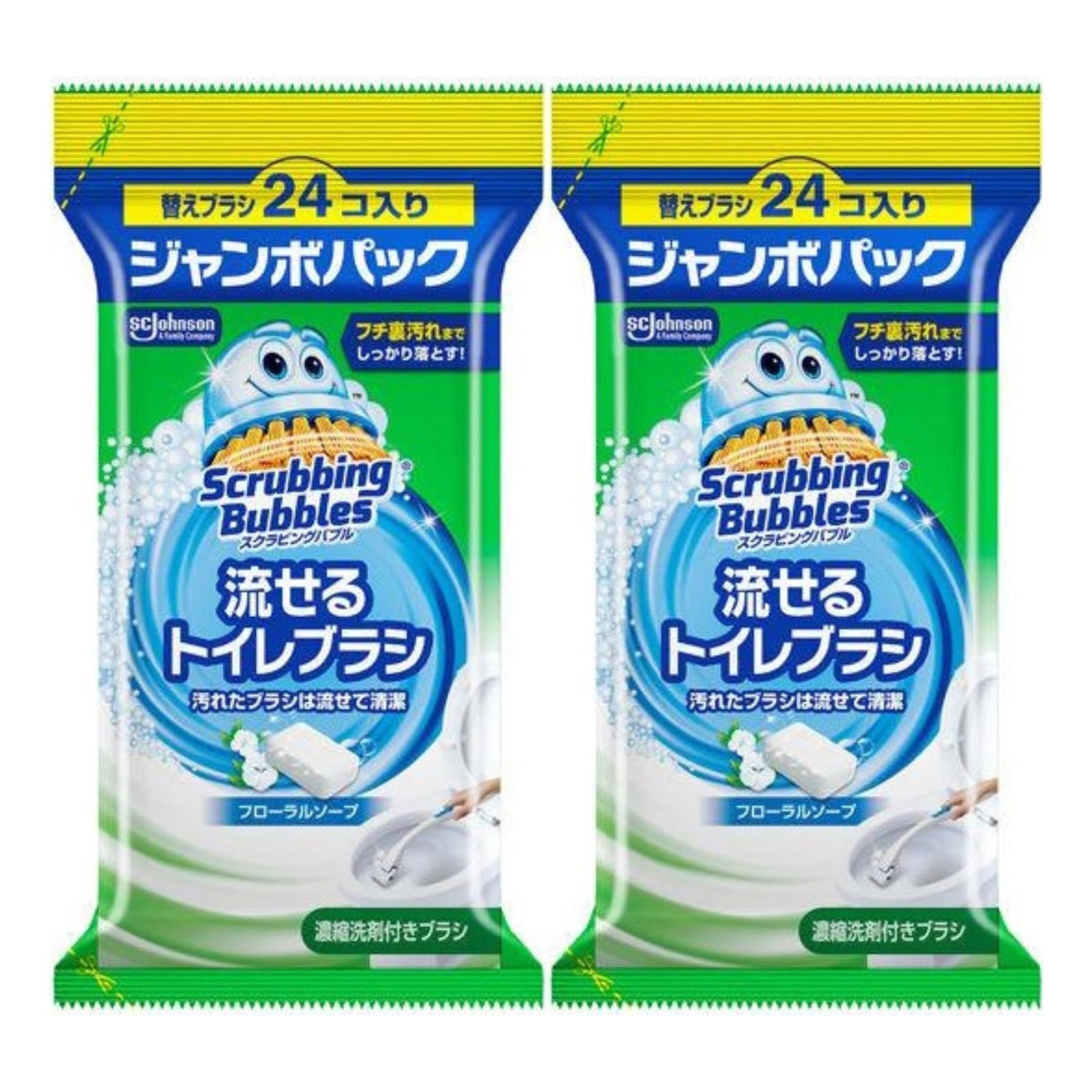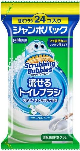【まとめ買い】スクラビングバブル 流せるトイレブラシ フローラルソープの香り 付け替え48個入り(24個×ジャンボパック2袋)|強力洗浄&衛生的|使い捨てブラシで手が汚れず簡単トイレ掃除 (付替, 2, 個)