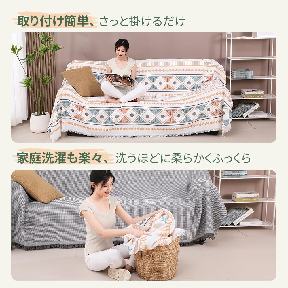 サイズ:180×300cm(3人掛け) ※防塵や爪ドキ防止などの機能があります。ソファーがすっかり新しくなり、ほこりや汚れを防げます。ソファー全体を簡単にカバーするだけで、ソファーをしかっりと保護できます。子供とペットがいる家庭に適しています。