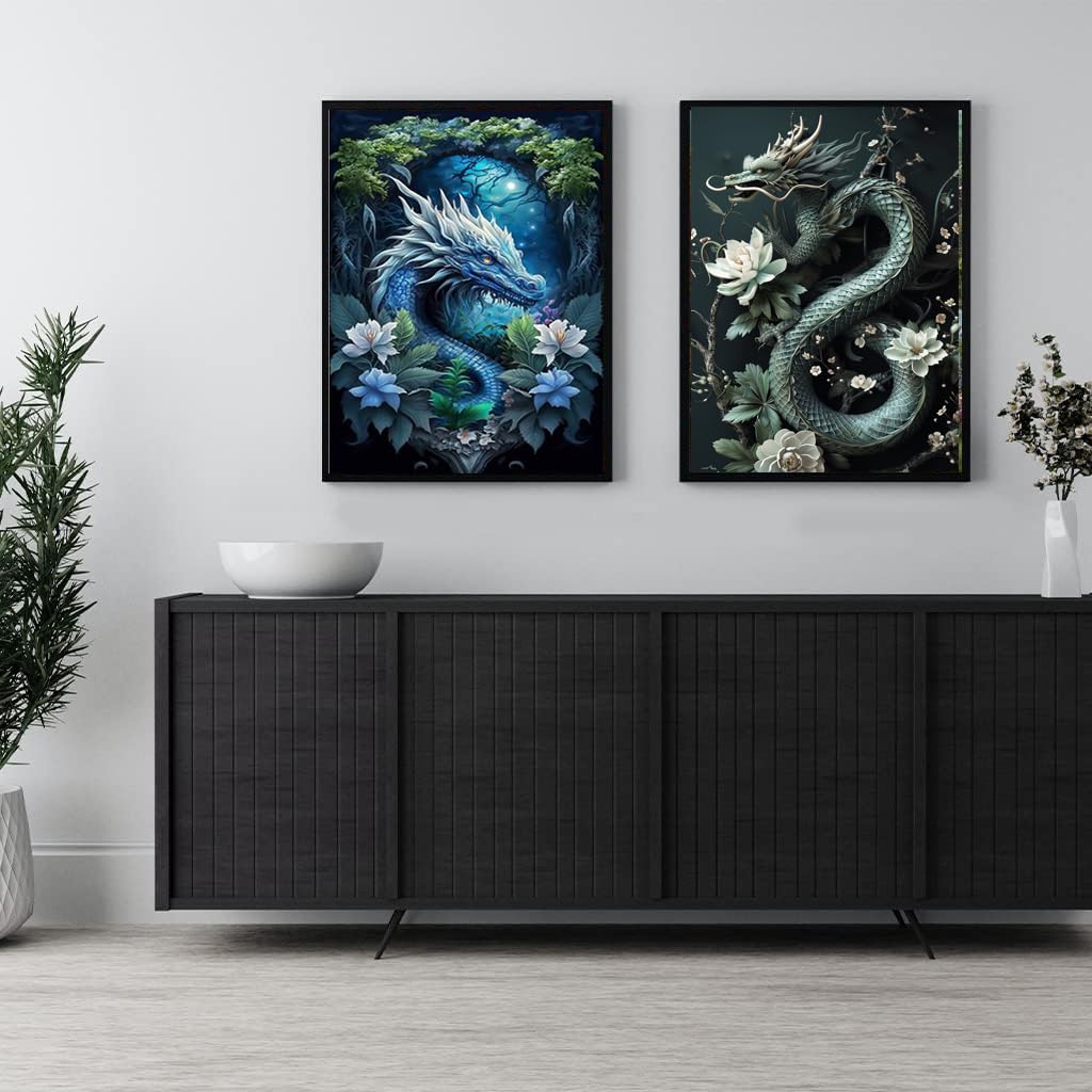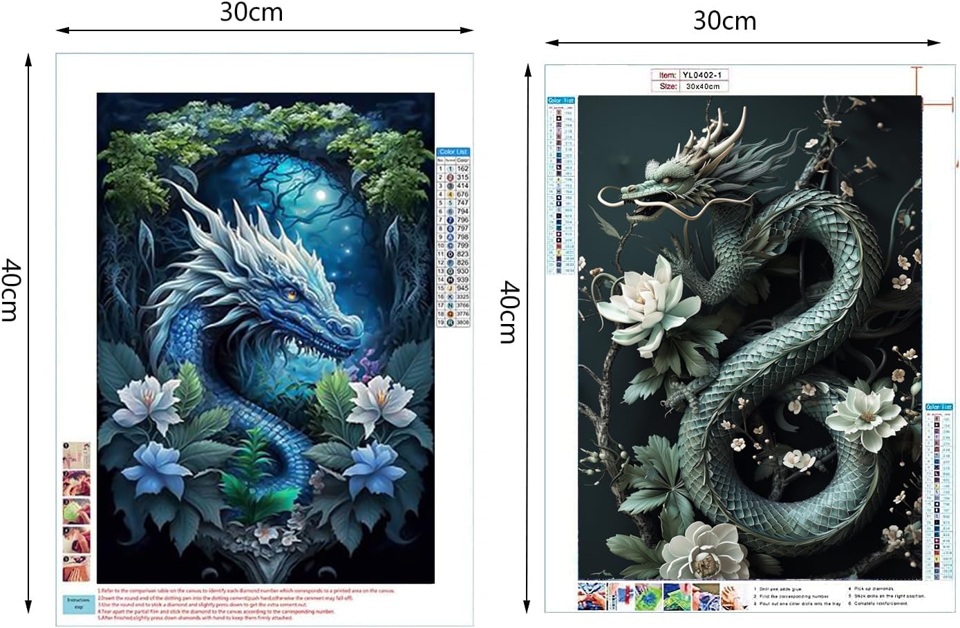 2枚ダイヤモンドアート キット 5D ダイアモンドアート セットドラゴン 塗装全面貼り付けダイアモンドビーズ絵画キット DIY手作り絵画 手芸キット モザイクアート ハンドメイド かわいい 芸術品 装飾 ダイヤモンド塗装 立体画面 壁掛け ツール30x40cm