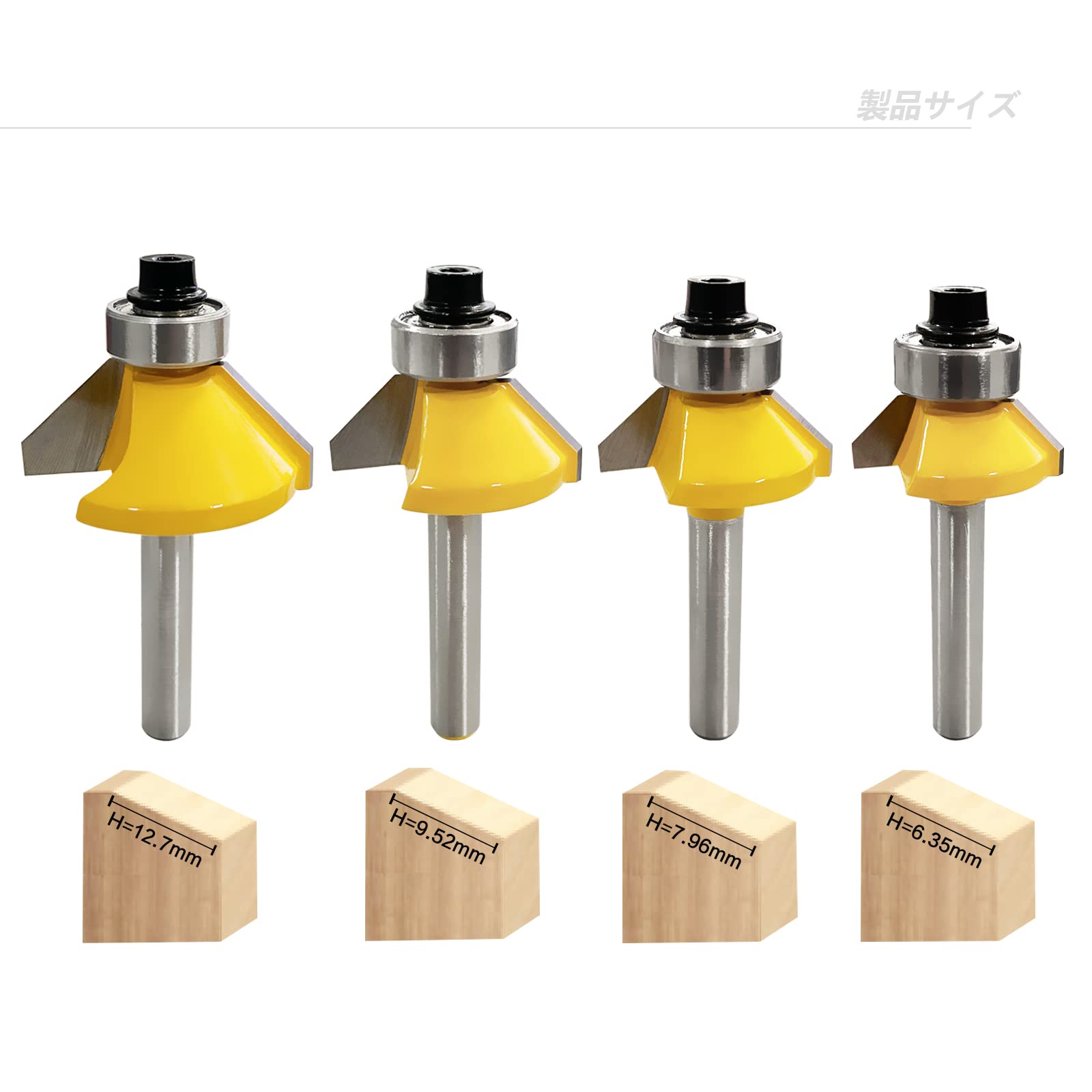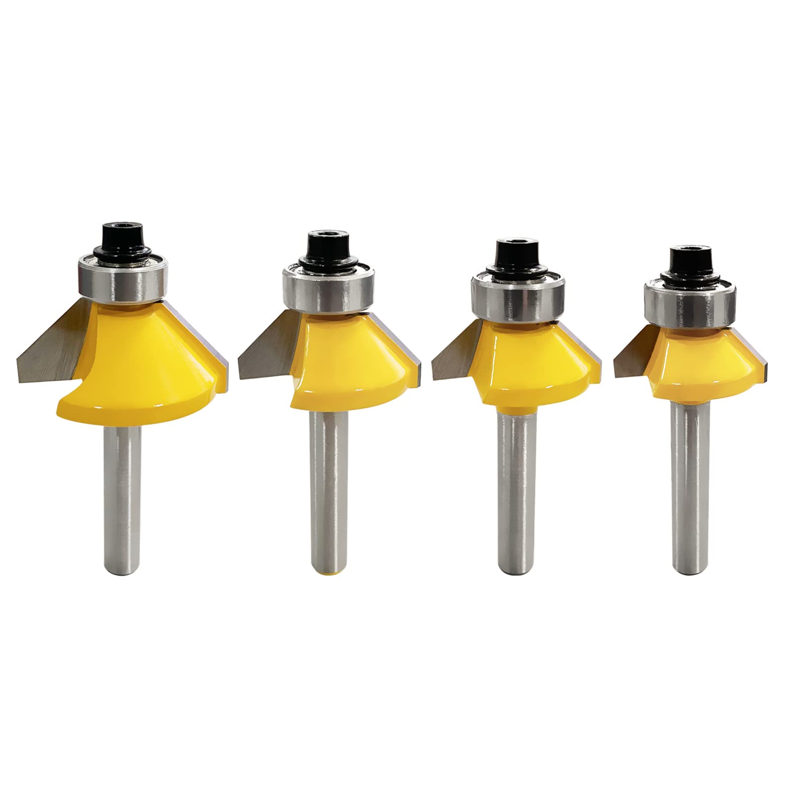 CSOOM 45度面取りビット 4本セット、6mmシャンク、超硬トリマー、ルータービット、コーナーラウンド、電動トリマービット、DIY木工に最適なベアリング付き!
