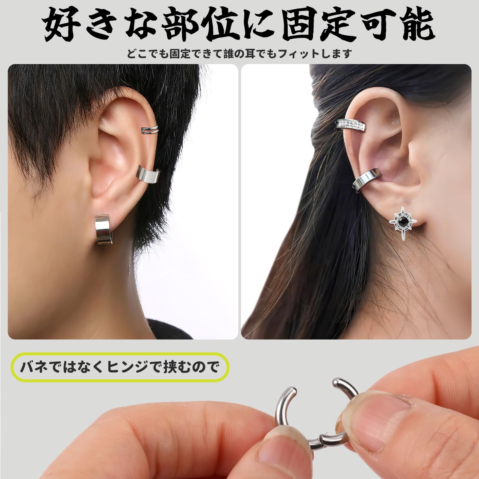 材質:これらのイヤーカフ メンズはステンレス材質を採用し、耐腐食性、防水性、耐汗性があり、錆びや変形しにくく、長期間着用しても色褪せたり酸化したりしにくいです。運動中に汗をかいても、シャワーを浴びていても、または高温環境でも、フェイクピアス メンズは光沢と美しさを維持できます。ステンレス材質で縁も滑らかで安心して着用できます