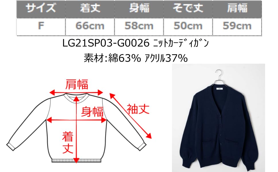 SIZE:Free 着丈:66cm 肩幅:59cm 身幅:58cm そで丈:50cm