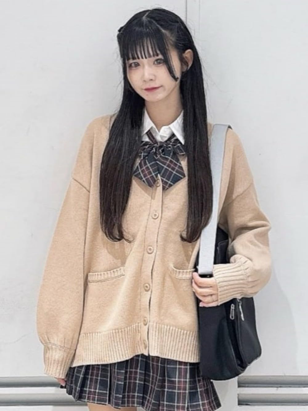 シンプルなデザインが制服にも合わせやすいカーディガンです! だぼッとした少し長めの袖と長めの丈感でルーズシルエットに。 女の子らしさを演出します♪