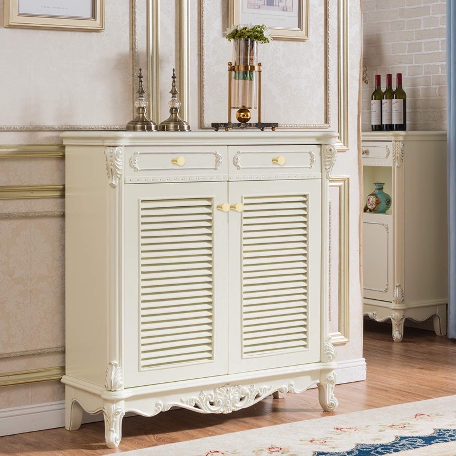 取っ手 真鍮 つまみ 引き出し アンティーク調 キャビネット ノブ 食器棚 戸棚 箪笥 ハンドル ゴールデン 20mm 4個セット 2種類ネジ付き