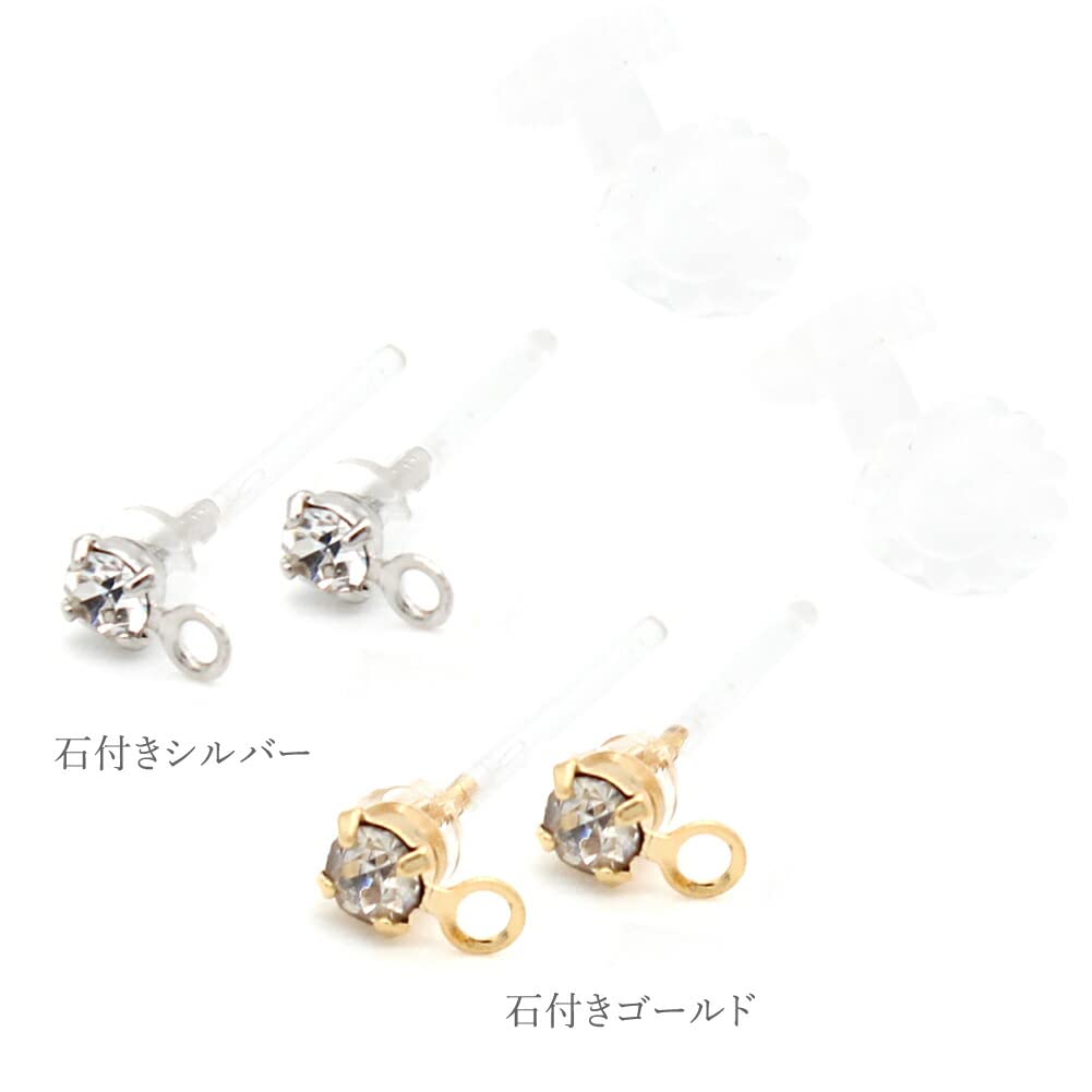 [ジュエリーショップエム] 樹脂ポスト カン付き 樹脂 ピアス アクセサリー パーツ シリコンキャッチ 金属アレルギー対応 2ペア セット ca0004
