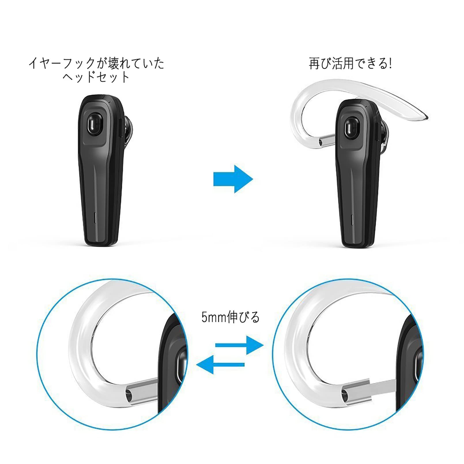 【用途】イヤーフックが壊れていたブルートゥースヘッドセットが再び活用できる。