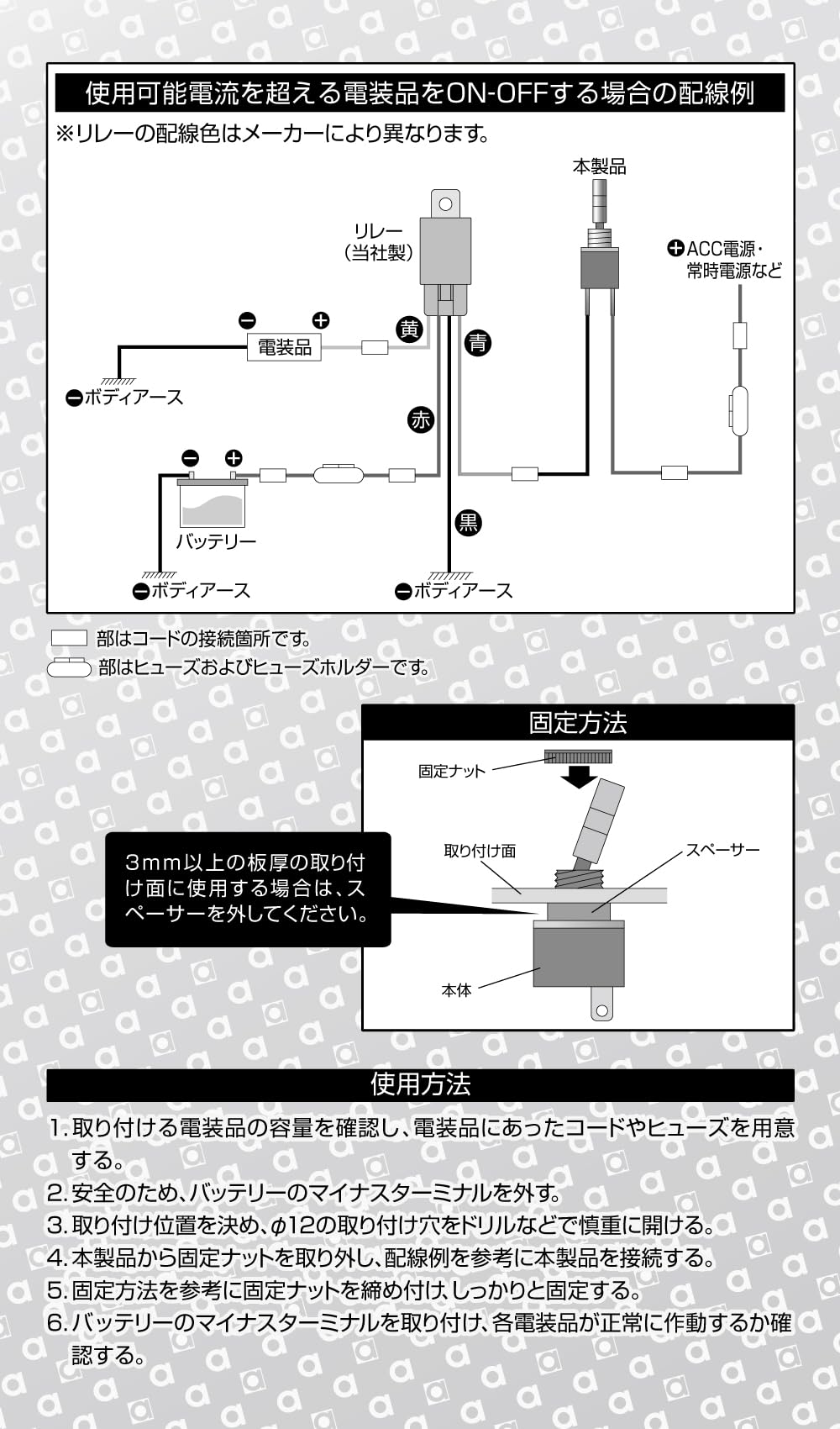 使用可能電流:DC12V車専用/8A以下