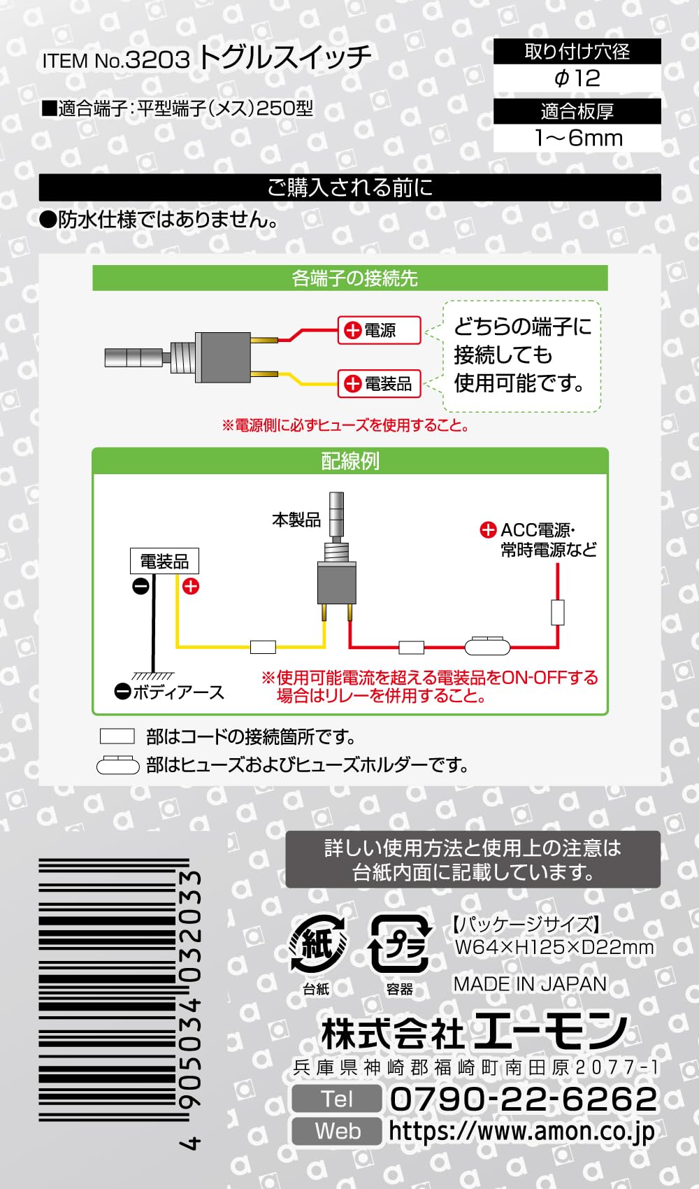 エーモン(amon) トグルスイッチ ON-OFF DC12V・8A 3203