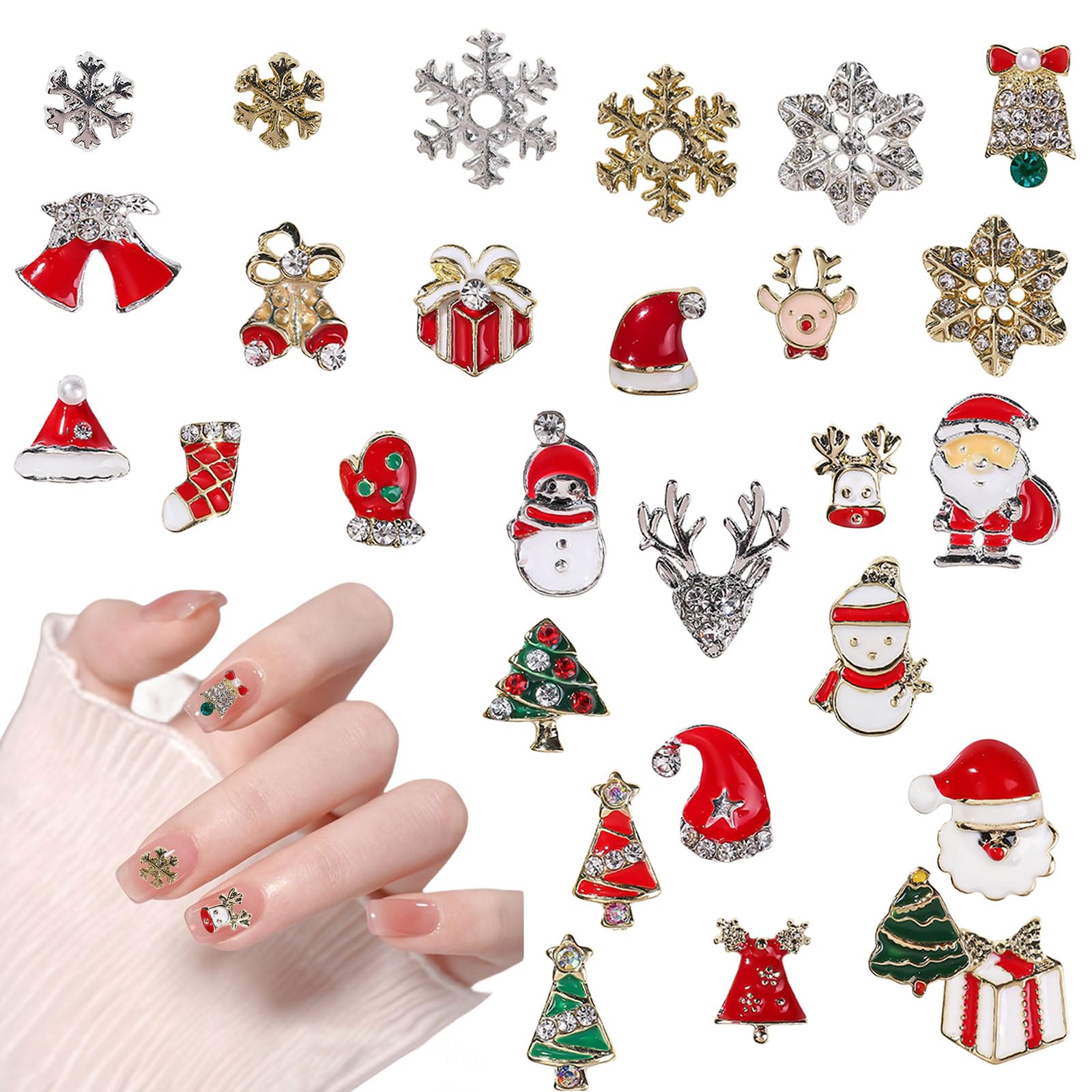 【努力特価】クリスマス ネイルパーツ 28個セット 3D 立体 ネイル メタルパーツ 可愛い サンタクロース 雪だるま 雪の結晶 クリスマスツリー トナカイ ベル ネイルパーツ ストーン ゴールド シルバー ネイルアート ジュエリーパーツ デコパーツ チャーム (ミックス A)