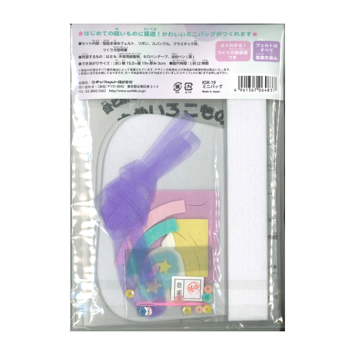 【在庫処分】サンフェルト 子ども手芸キットシリーズ 針と糸でつくる ゆめいろこもの ミニバッグ レシピ付き SFKSK-19