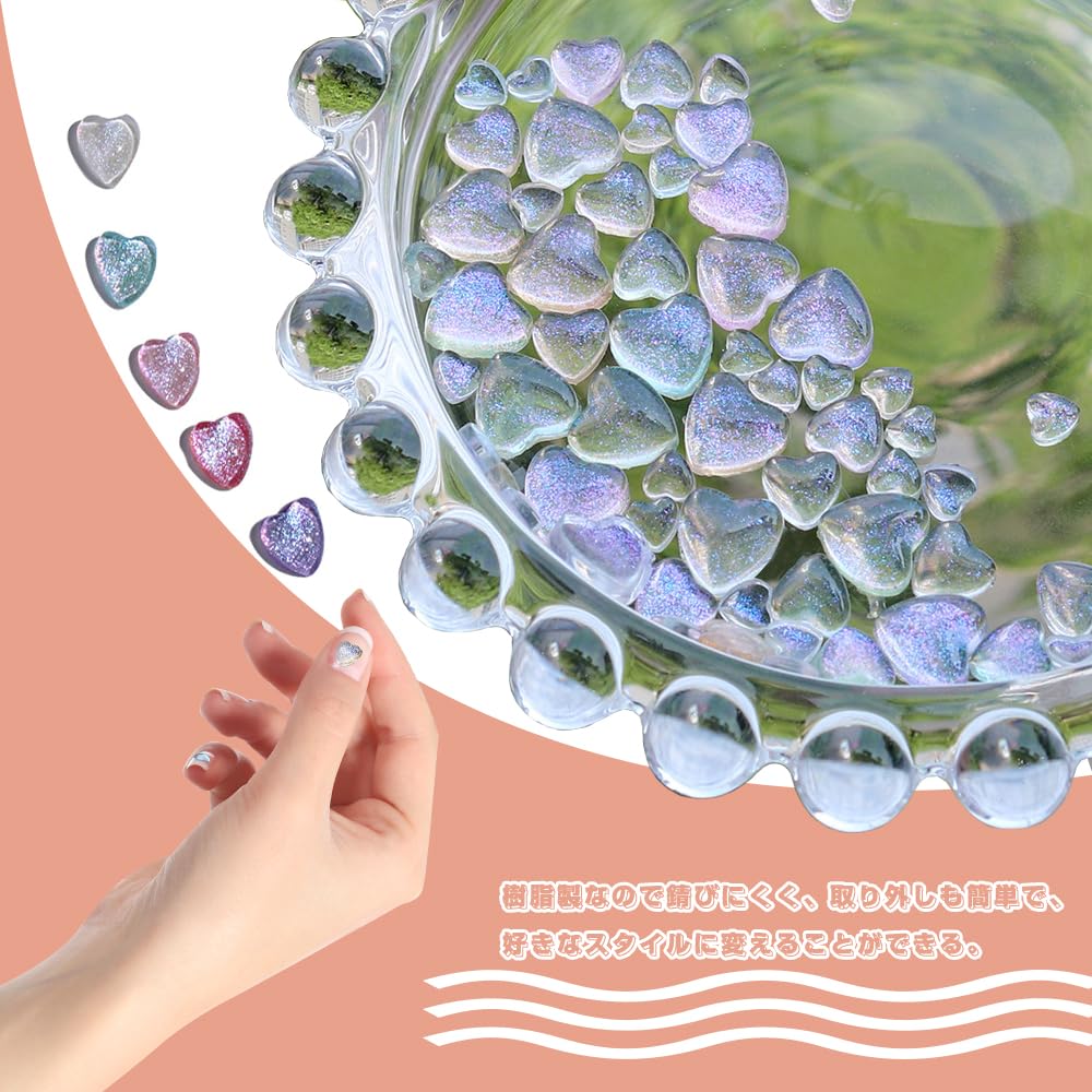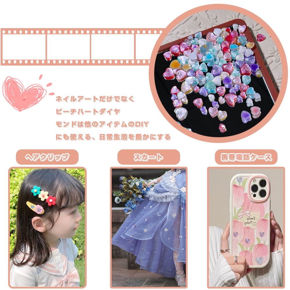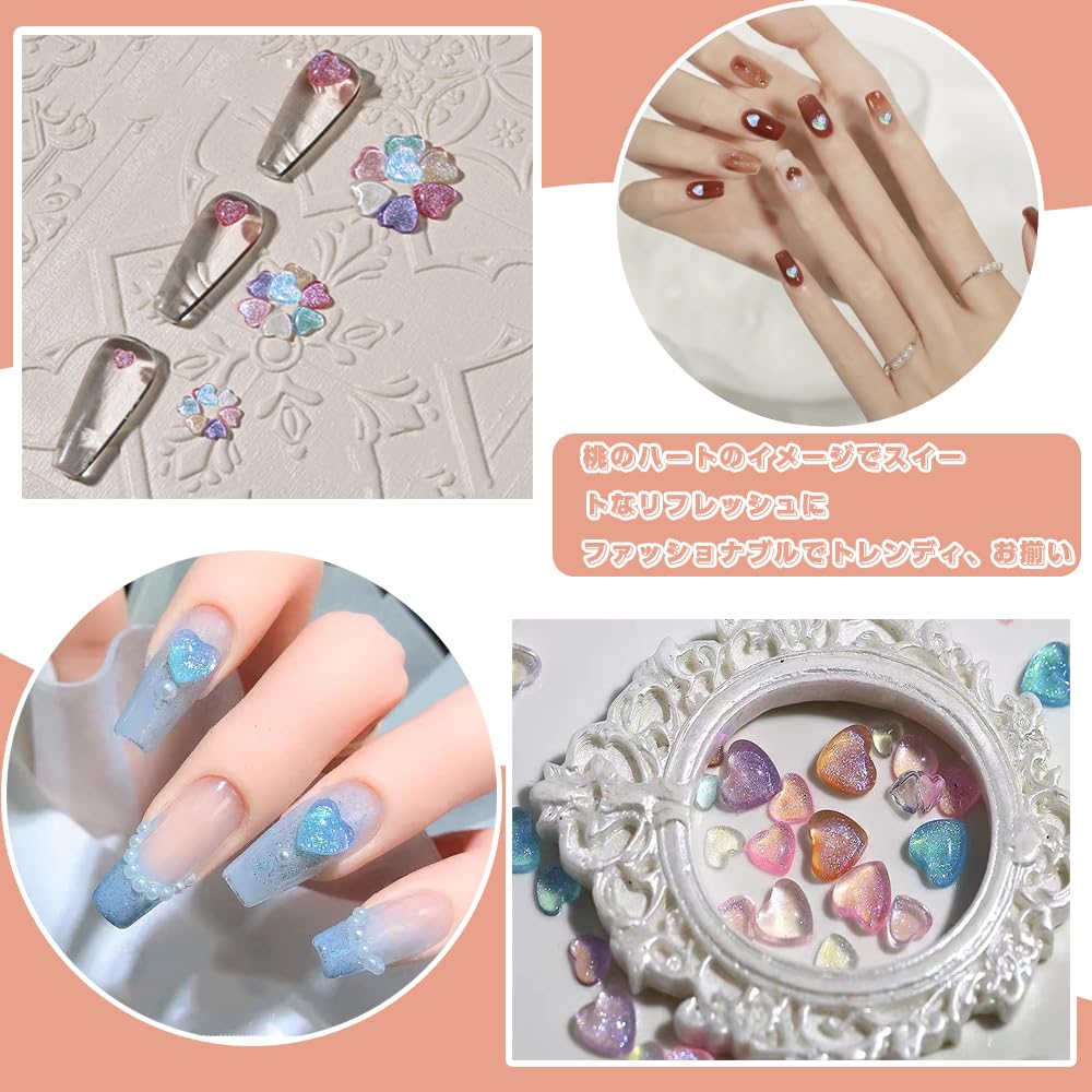 多機能:カラフルな3Dハート型ネイルダイヤモンドは、幅広いDIYプロジェクトに使用できます。様々なネイルデザインに適用、レジンアートやハンドメイドの素材としても使えます、スマートフォンケースなどの平面で飾ることができます。