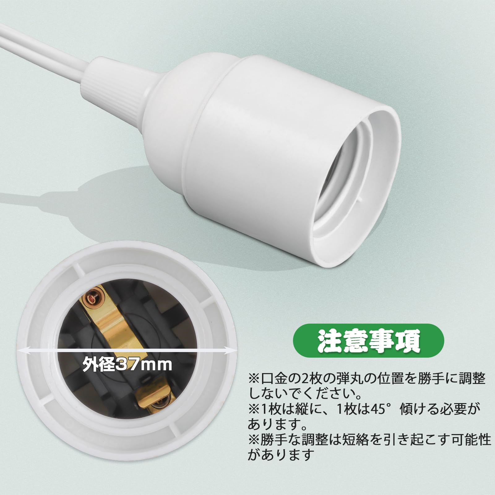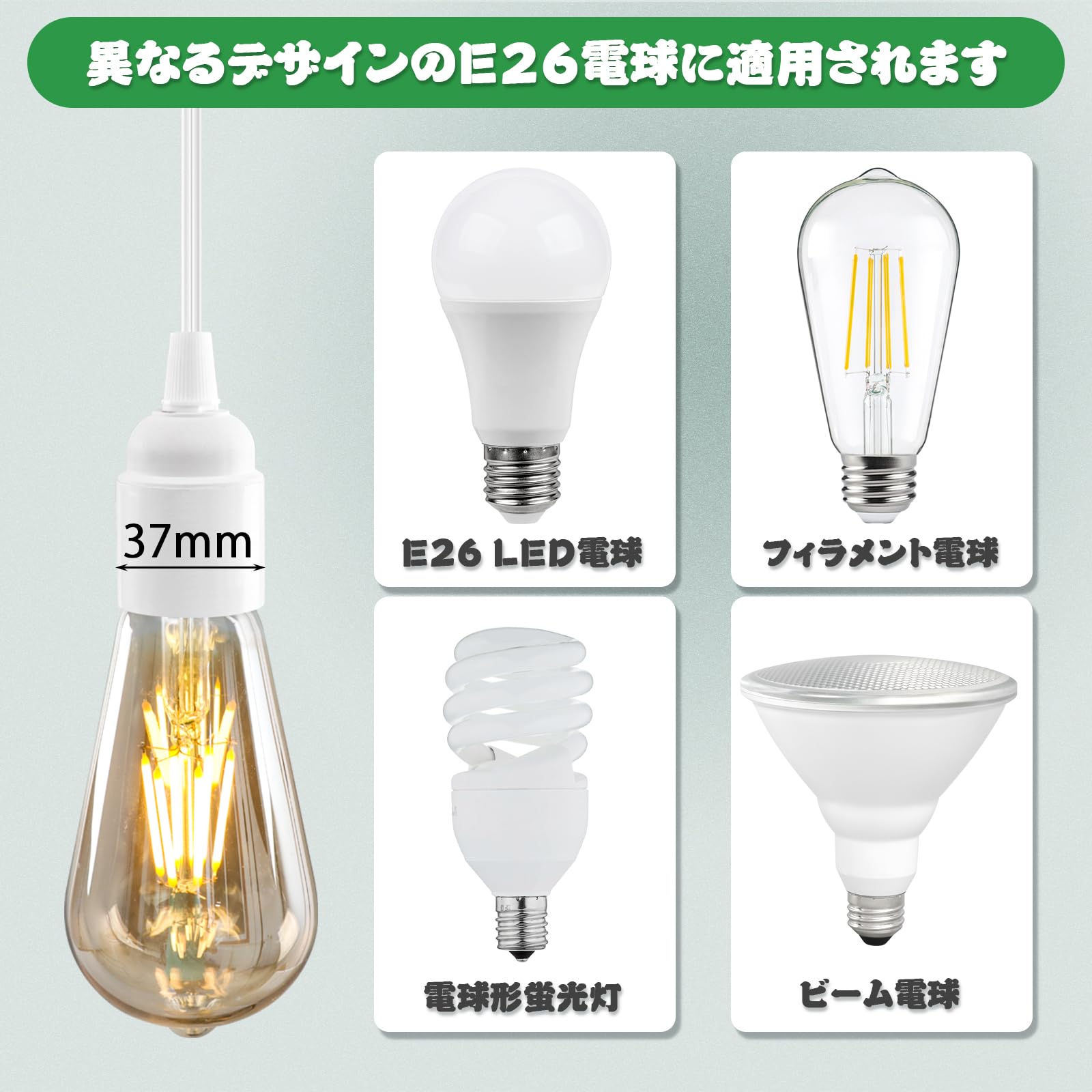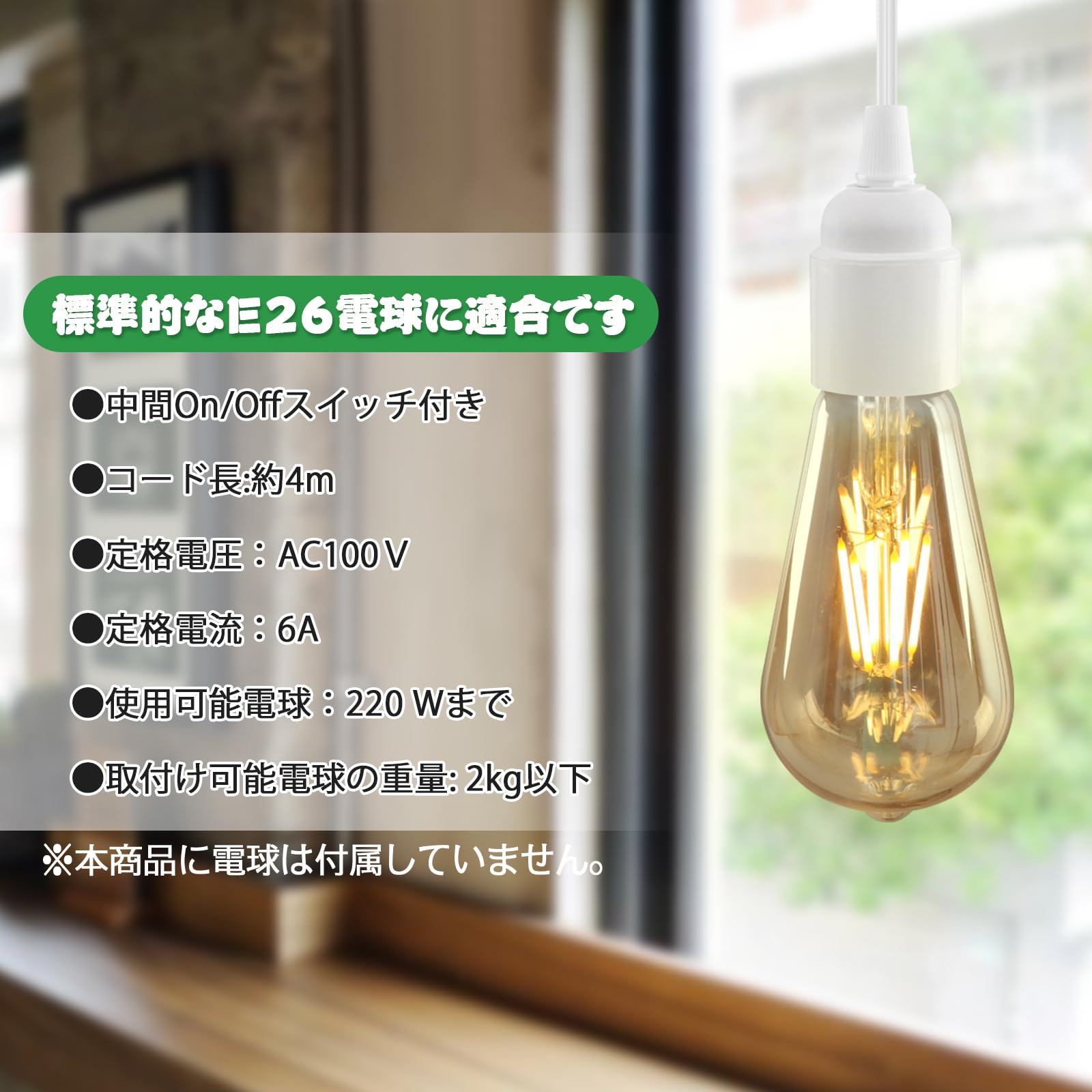 電球ソケット e26 4m コード付き ソケット コンセント 中間スイッチ付き 工事不要 照明器具 おしゃれ ホワイト 2個セット(電球別売り)