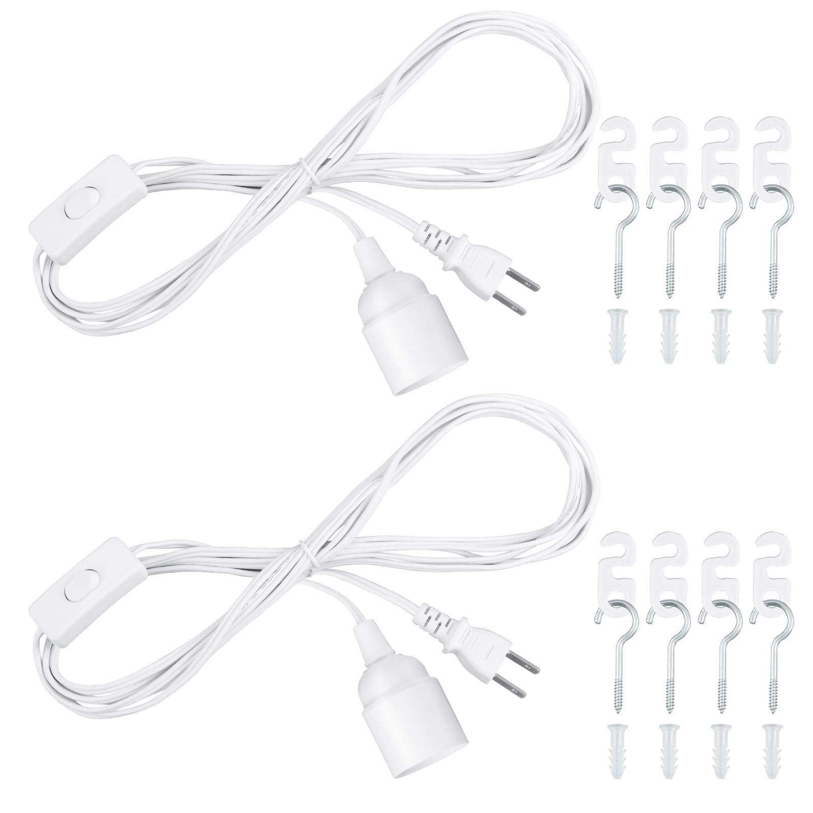 【特価処分】電球ソケット e26 4m コード付き ソケット コンセント 中間スイッチ付き 工事不要 照明器具 おしゃれ ホワイト 2個セット(電球別売り)