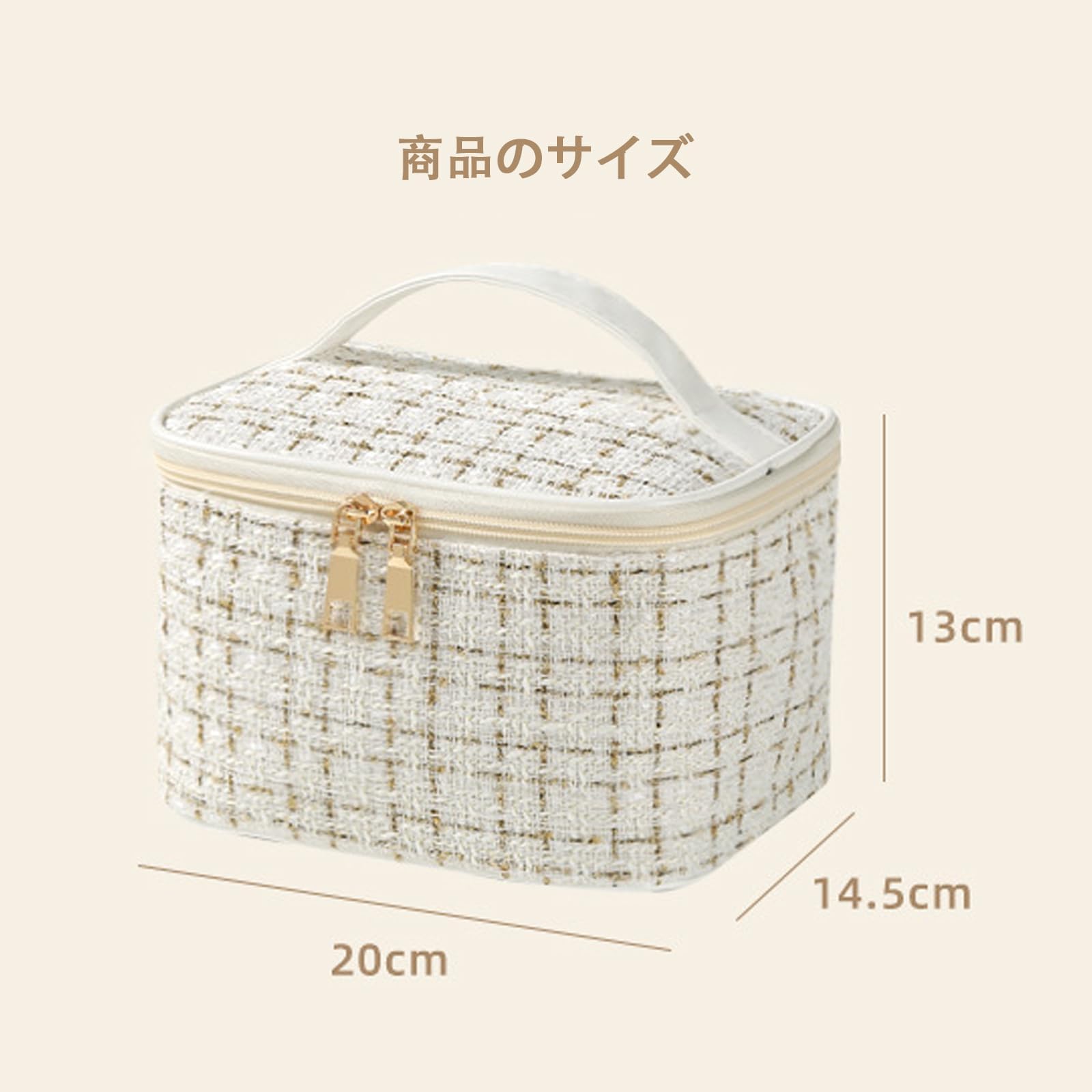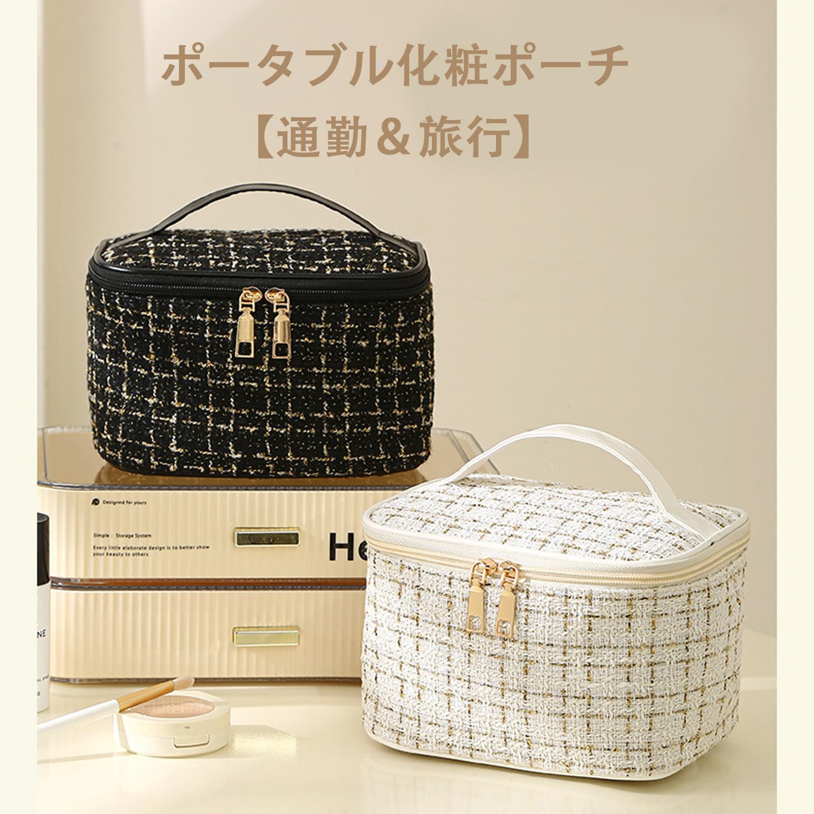 化粧ポーチ 大容量 メイクポーチ 化粧品バッグ 広口 収納ポーチ メイクバッグ 人気 多機能 手提げ メイクアップポーチ おしゃれ 旅行用 コスメ収納 携帯に便利 (White-白)
