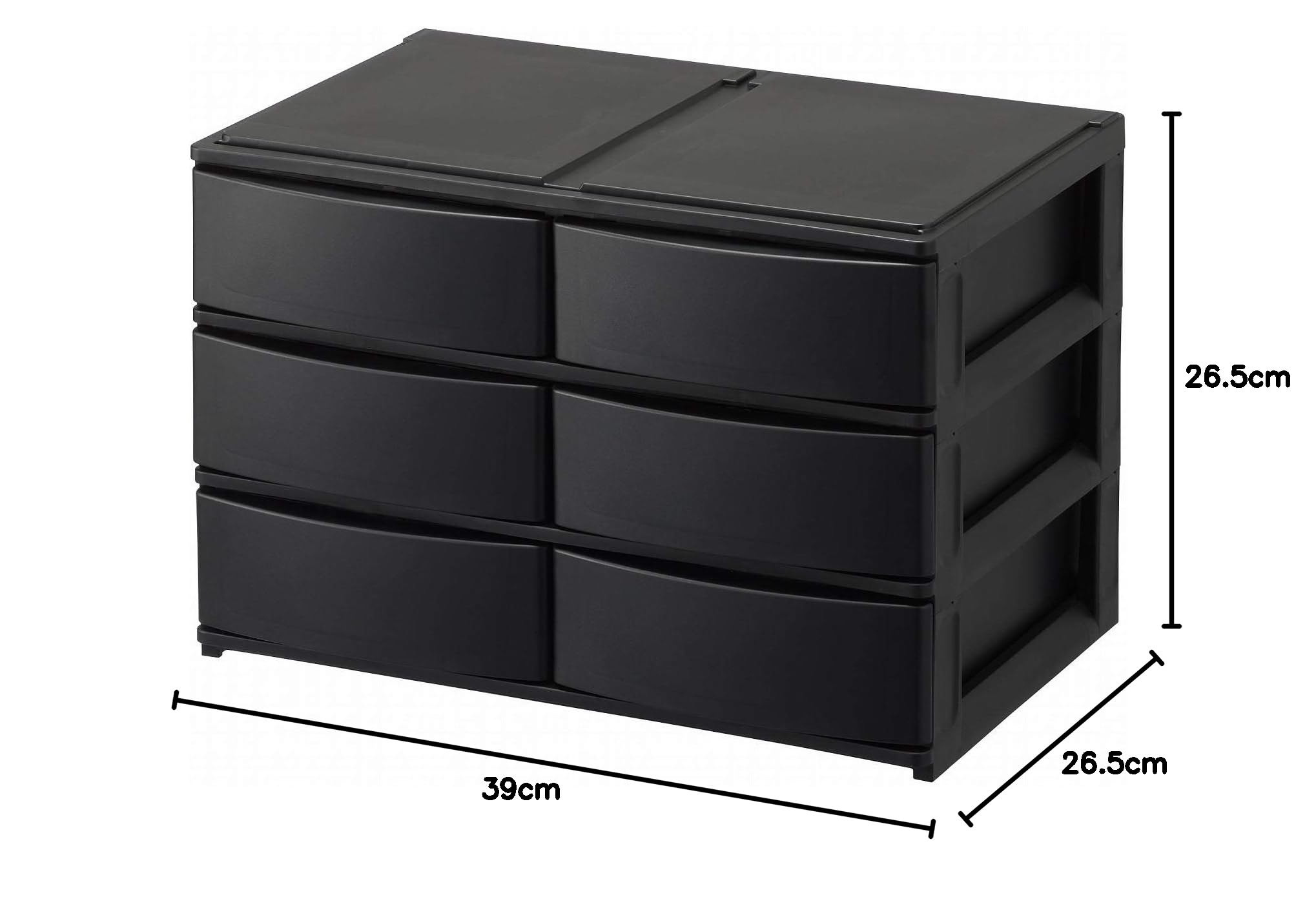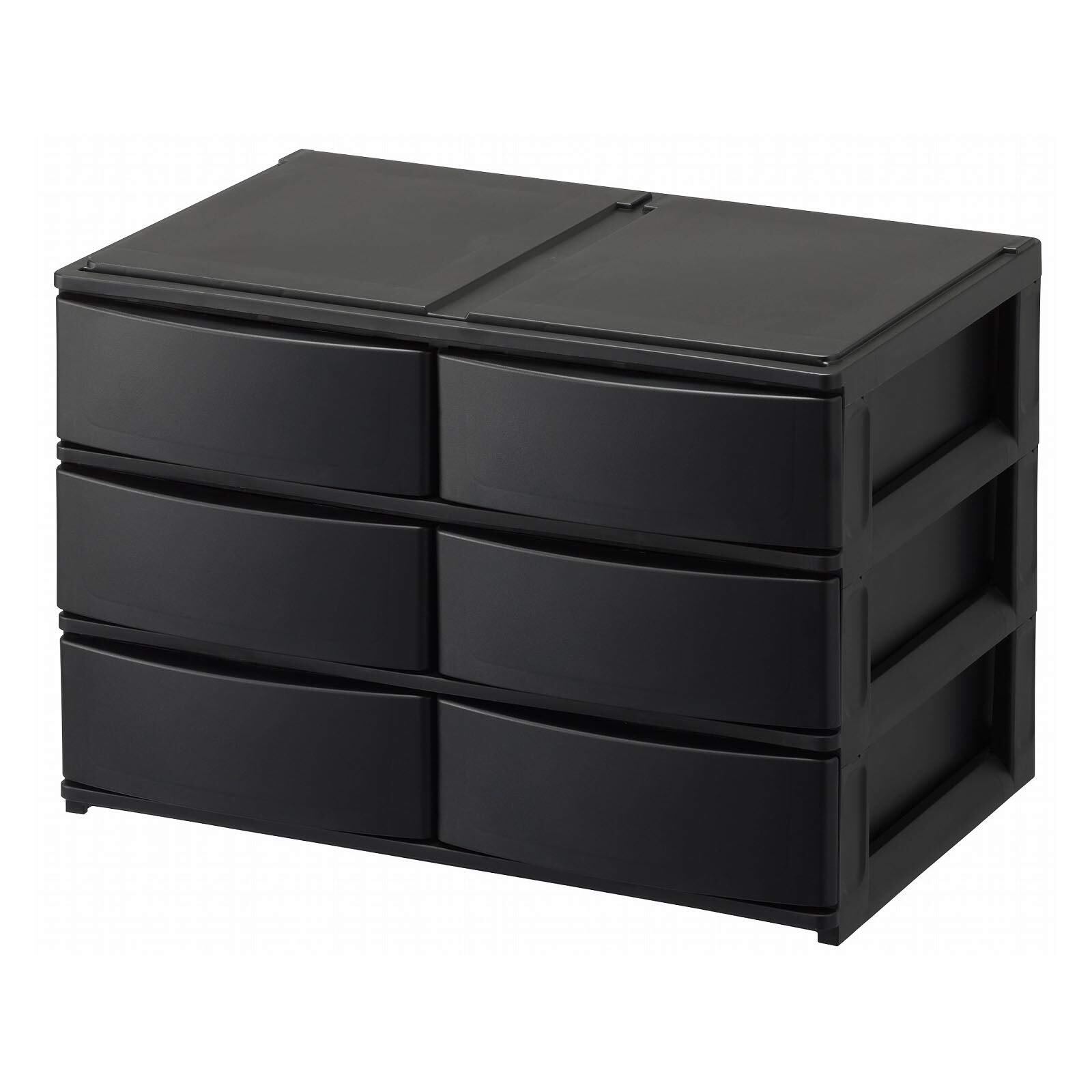 サンカ ポスデコ カラーボックスにピッタリフィット 引き出し収納ボックス ワイド 浅3段(引出し6個) ブラック ずれを防ぐラバーストッパー 重ねて使える スタッキングチェスト ロック機構 日本製 カラーボックス 収納ケース 小物 衣装 ボックス (幅39x奥行26.5x高さ26.5cm) NpdW-EBK
