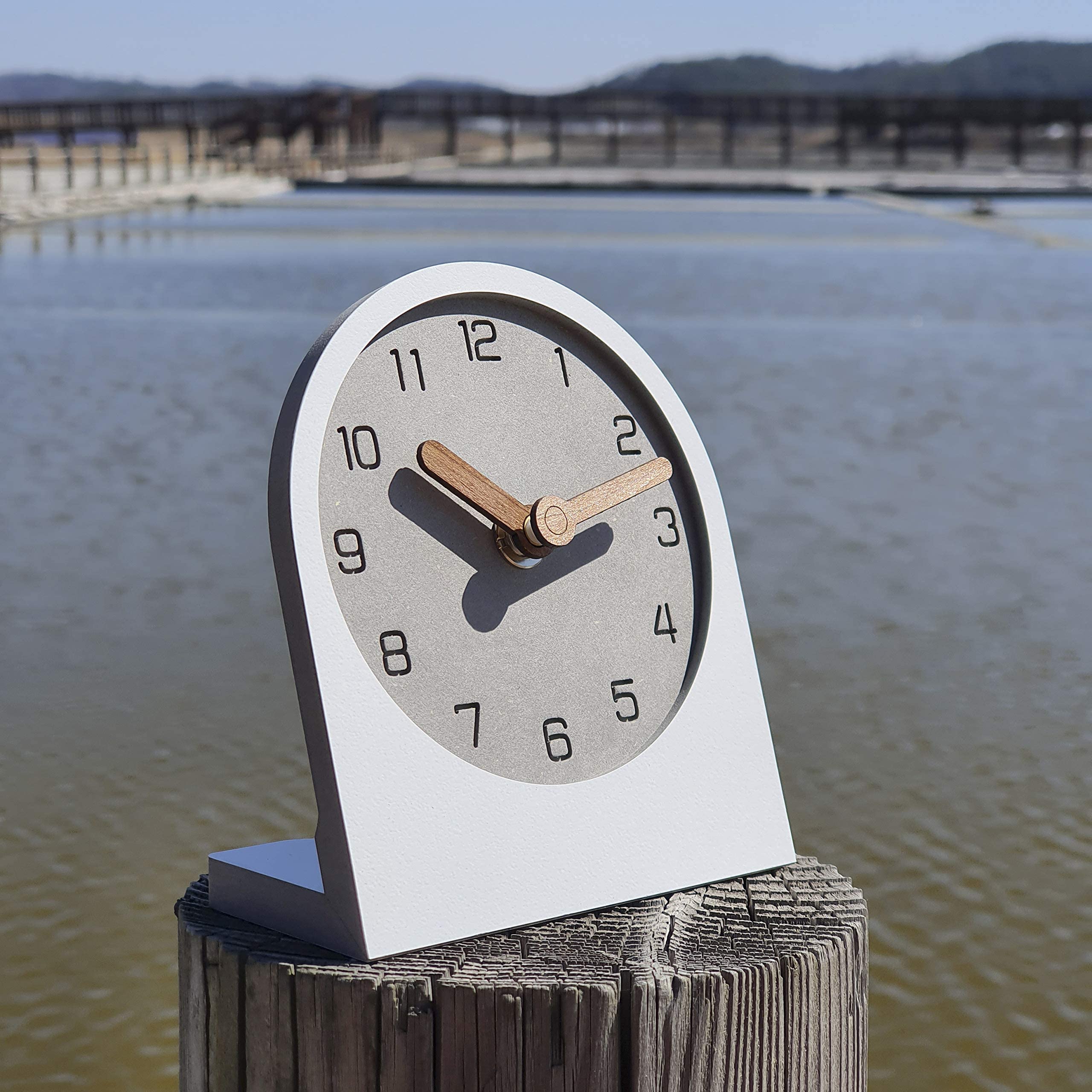 ムクス 置き時計 卓上時計 木製 アナログ 静音 サイレント ムーブメント ミニサイズ 単三電池作動 シンプル 手作り おしゃれ インテリア 小型 可愛い アート 部屋 寝室 オフィス 書斎 部屋飾り 室内装飾 ホワイト
