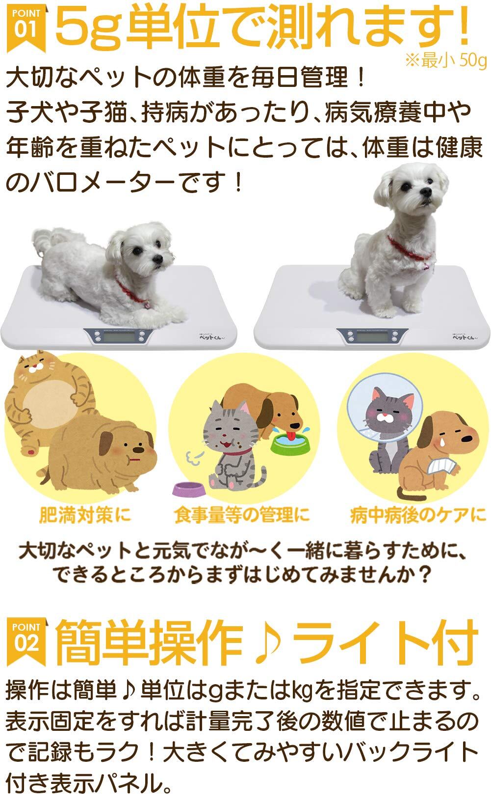 ペット 体重計 ペットくん 5g単位 最大20kg 小型 デジタル ペット用 ペット対応 ペットスケール 体重 犬 猫