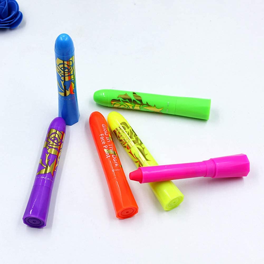 フェイスペイント 蛍光ぺん ボディペイント 全6色 顔ペン 夜も見える マタニティペイント クレヨン 簡単水洗 無毒 安全 コスプレ ハロウィン クリスマス イベンド 祭り スポーツ応援 (6色セット)
