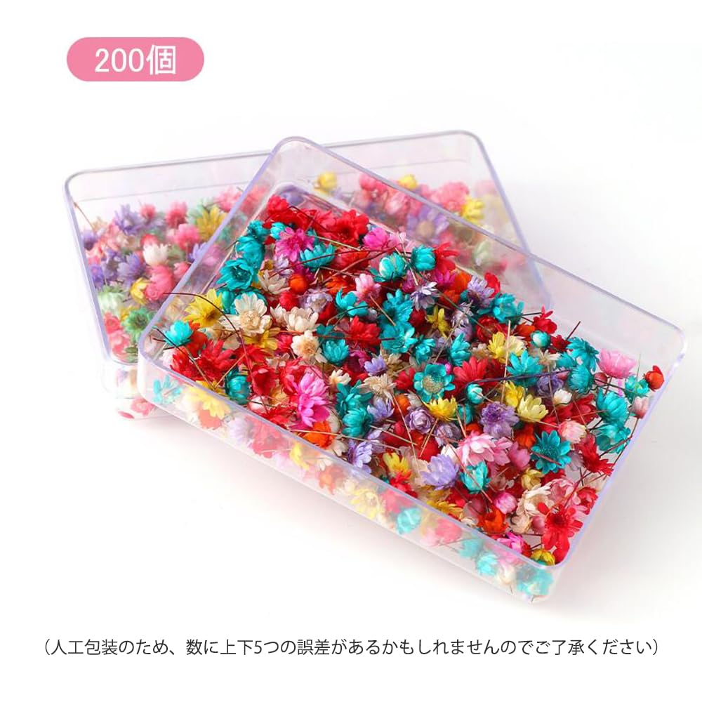 【パッケージ内容】ミックスドライフラワーは200個入り。(人工包装のため、数に上下5つの誤差があるかもしれませんのでご了承ください)
