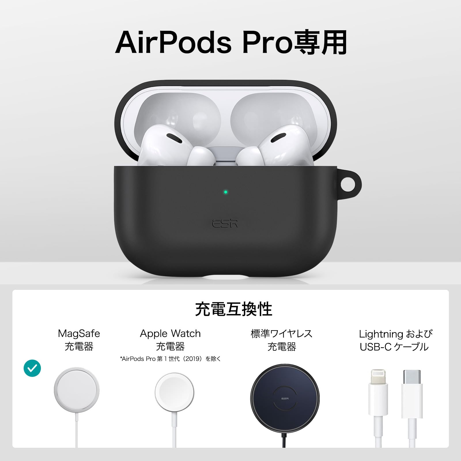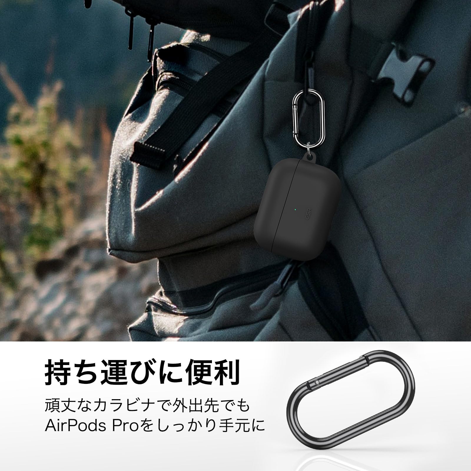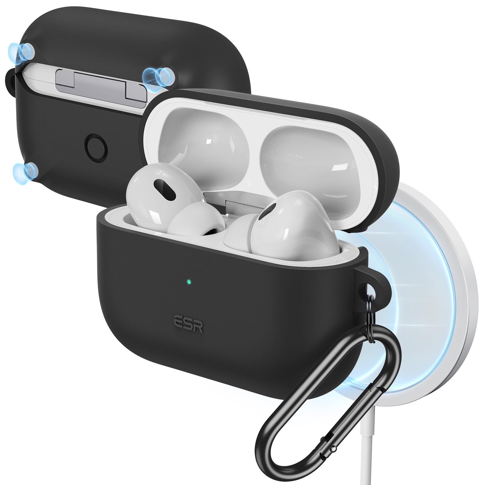 ESR AirPods Pro2 ケース MagSafe 対応 AirPods Pro 第2世代/第1世代 (2023/2022/2019)専用 HaloLock搭載 カラビナ付き ワイヤレス充電対応 可視LEDライト 耐衝撃 ブラック Bounce Series