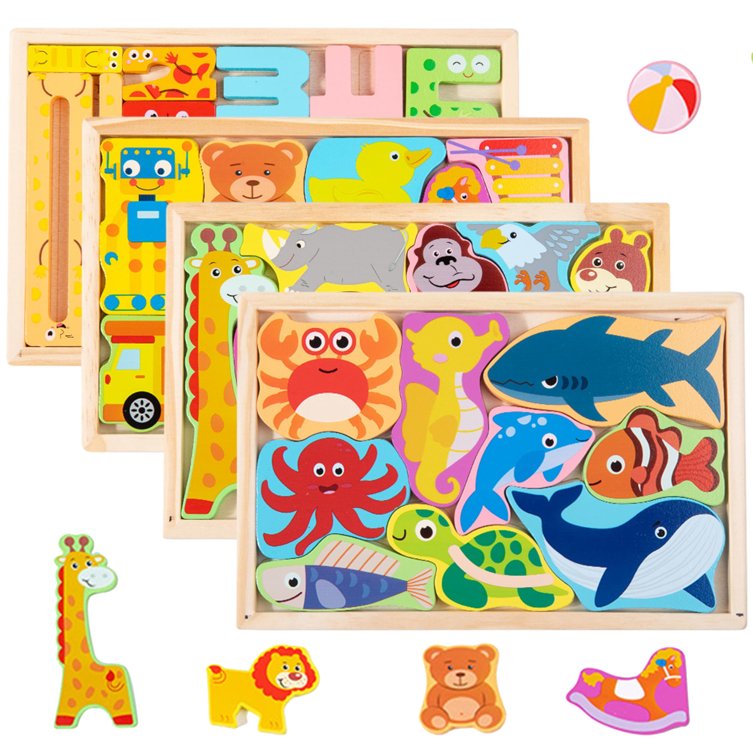 【在庫のみ】Shinse 木製パズル 型はめパズル 形合わせ かたはめ モンテッソーリ 3 4 5 6歳 子ども 幼児 早期開発 知育玩具 指先あそび 数字・形・図形認識 男の子 女の子 おもちゃ 誕生日 クリスマス (セット2-4PCS)