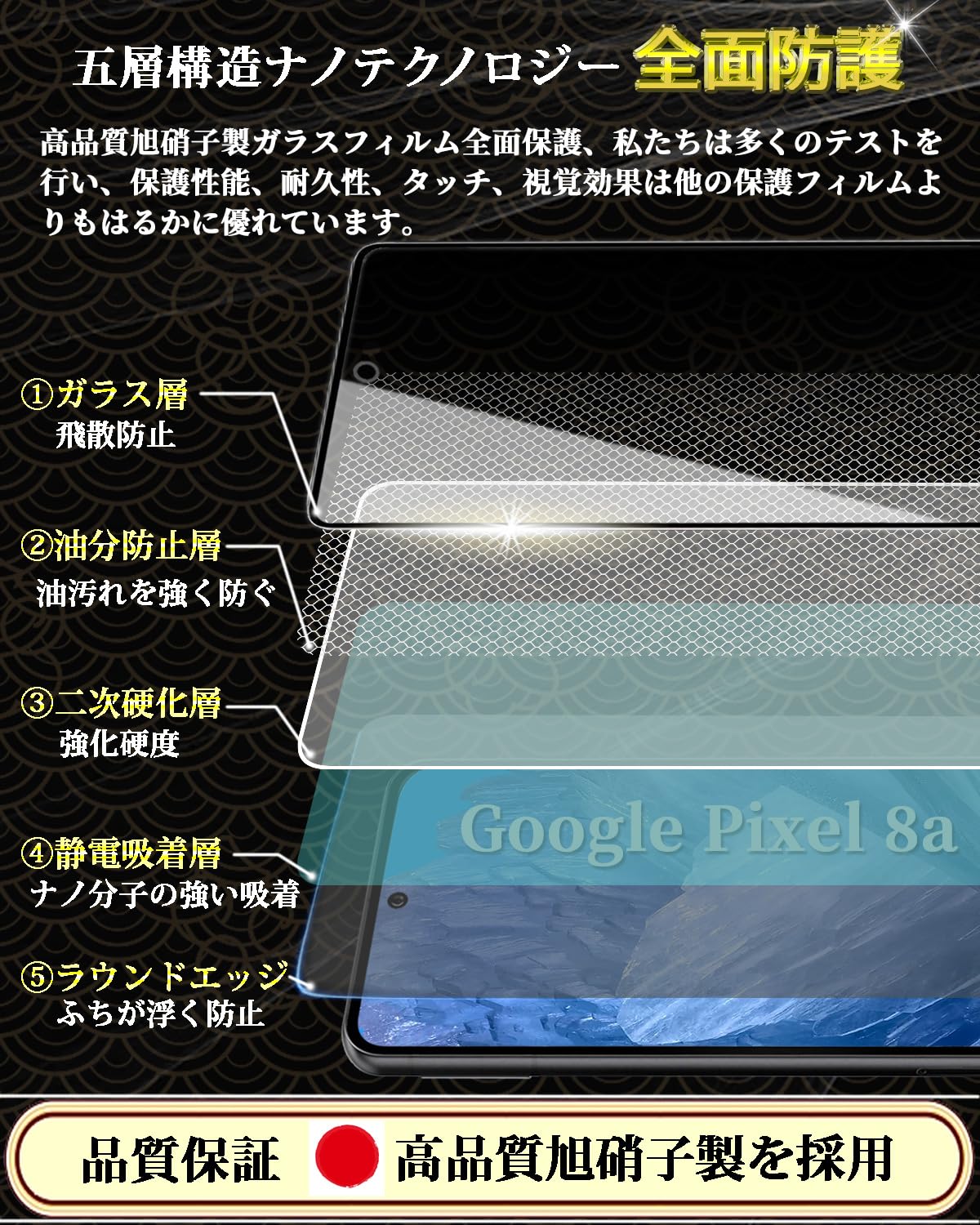 【指紋認証対応!対応機種】Google Pixel8a のぞきみ防止 フィルム 専用設計。ピクセル8a 覗き見防止ガラスフィルム【プライバシーを守り】。ご注意:本製品の覗き見防止反射技術により、指紋認証できない。