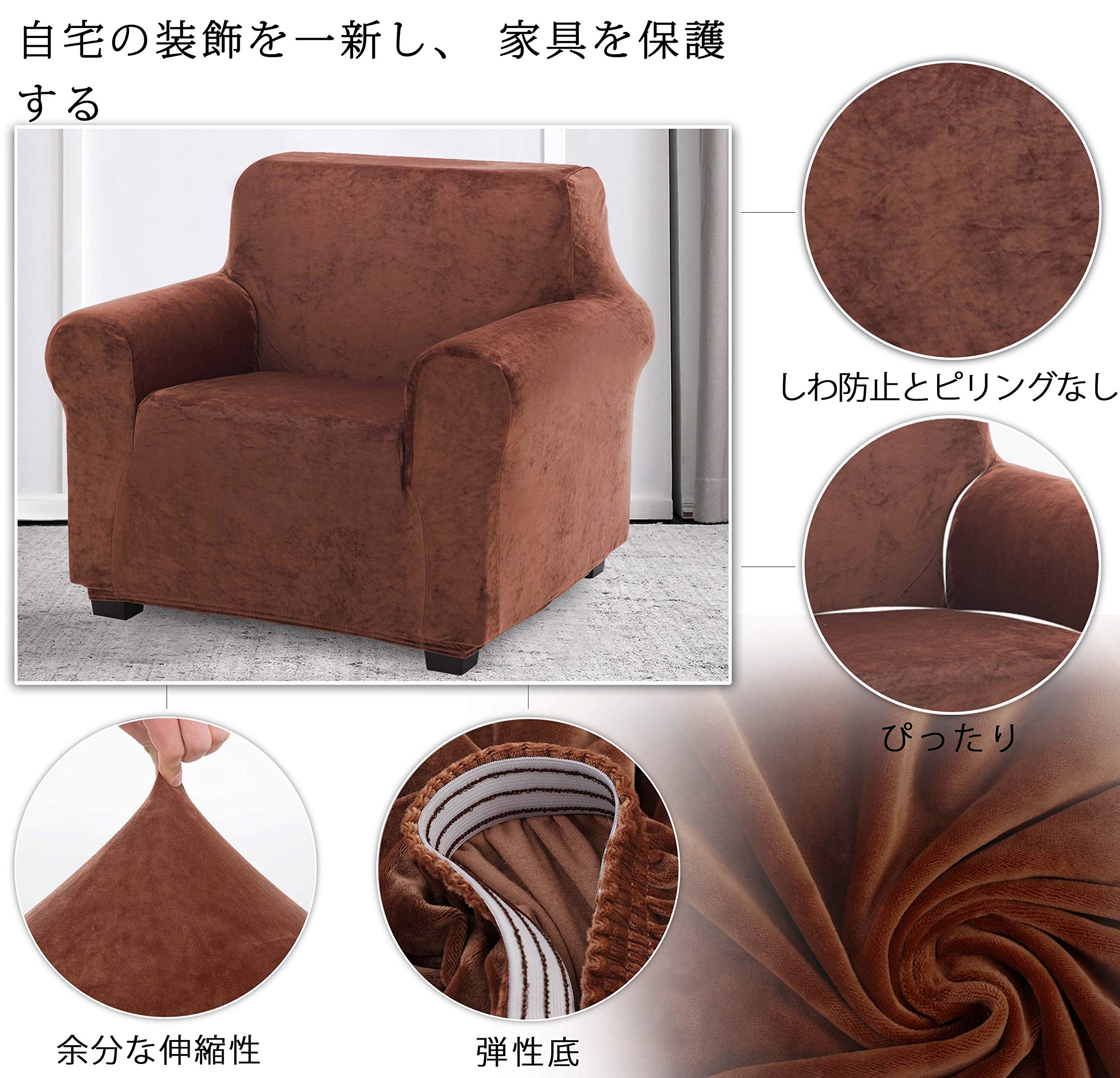 TIANSHU フランネル ソファーカバー 1人掛け 肘付き 無地 縦横弾力 ストレッチ フィットタイプ 肘付き 滑り止め 柔らかい 伸縮素材伸び良く 四季適用 超便利(1人掛け,コーヒー)