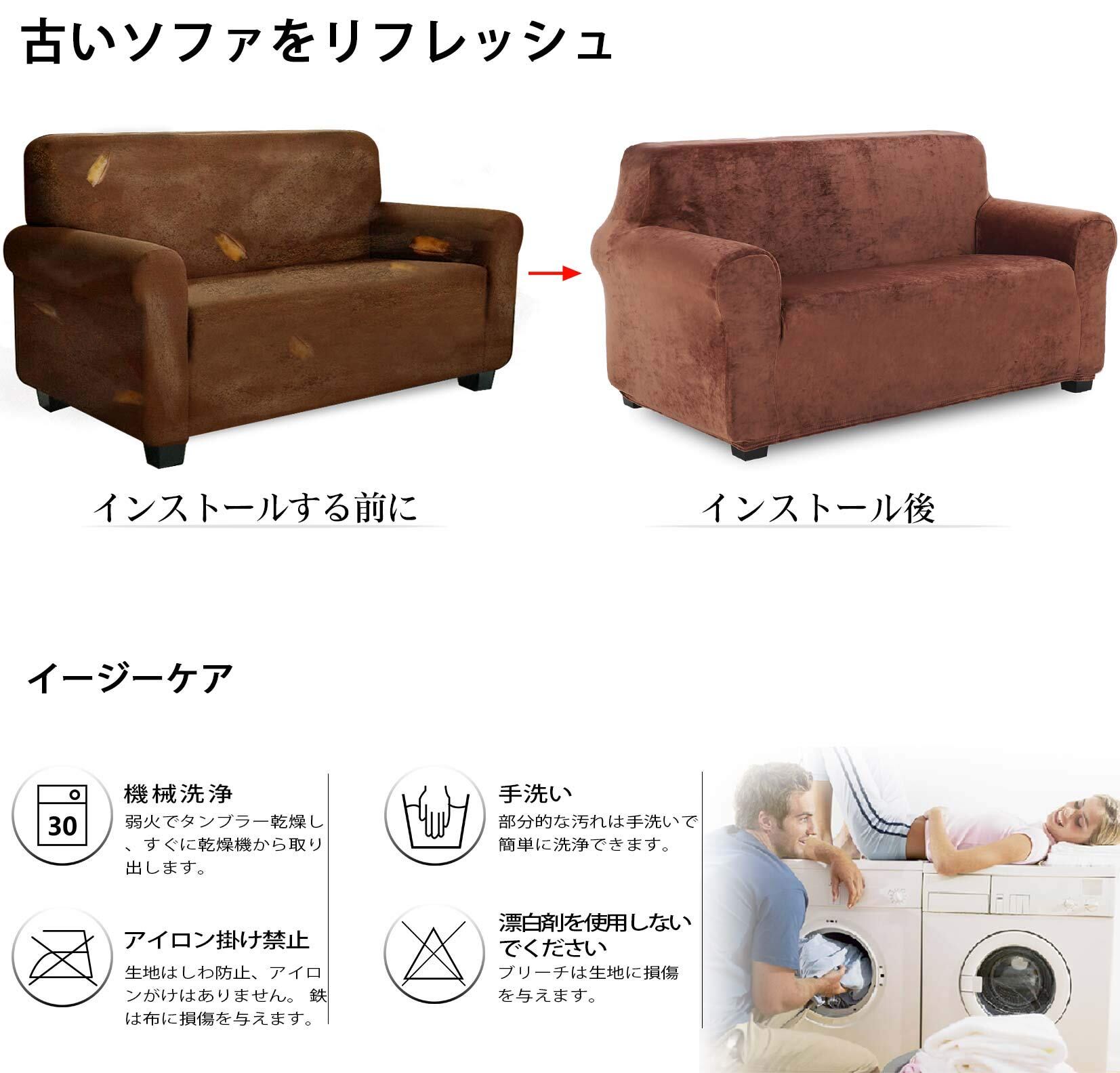抜群の伸縮力でソファカバーが変形しにくい、簡単に着脱でき、洗濯可能、肘付きソファーに適用します。
