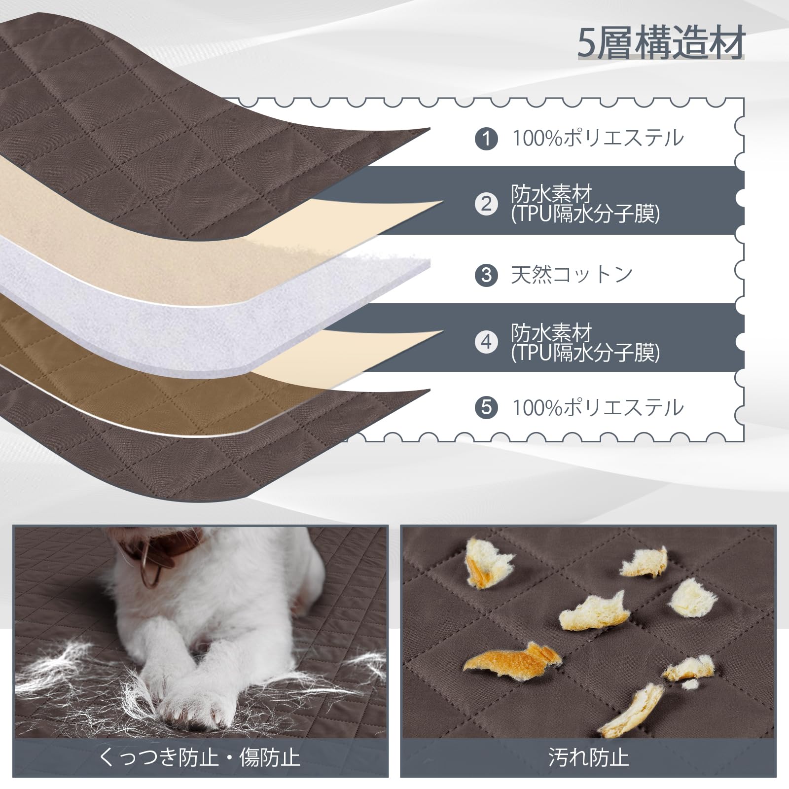 TAOCOCO ソファパッド ソファカバー ソファーシート マルチカバー ベッドカバー 防水 リバーシブル 犬猫対策 毛髪不粘着 防塵 汚れ防止 傷防止 爪とぎ防止 腕白防止 四季適用 撥水加工 丸洗い可能 ベッド ペットホーム ブランケット カウチ L字 ソファー 寝椅子などに適しています(ブラウン色、107*173センチ)