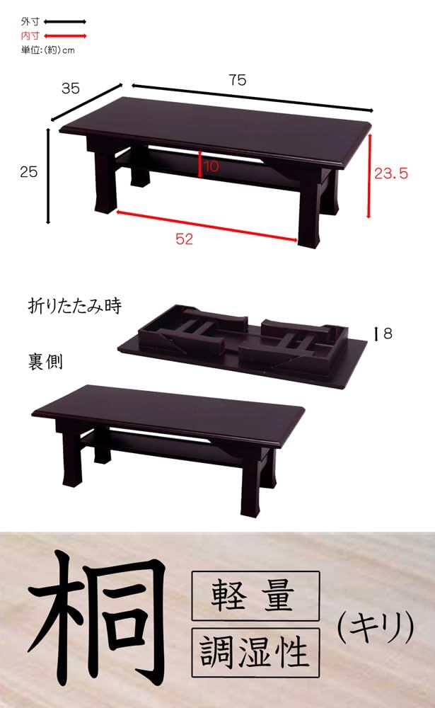 【新着特価】オスマック(OSMAC) 経机 文机 仏壇台 幅75×奥行35×高さ25cm 折りたたんで収納可能 供物台 供養台 写経机 便利机 天然木桐製 ブラウン SDX-750BR