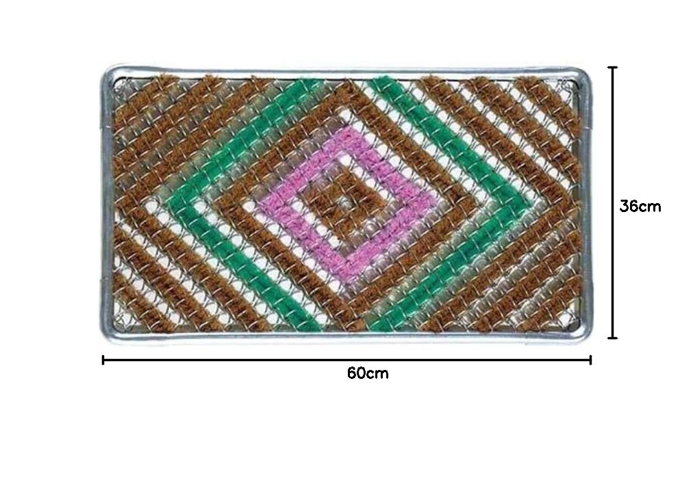 このマットは屋外用です。手洗いのみで、機械洗浄や他の荒々しいクリーニング方法は使用しないでください。また、材料は硬い鉄線でできており、注意して扱ってください。火気や鋭利な物体からも遠ざけてください。