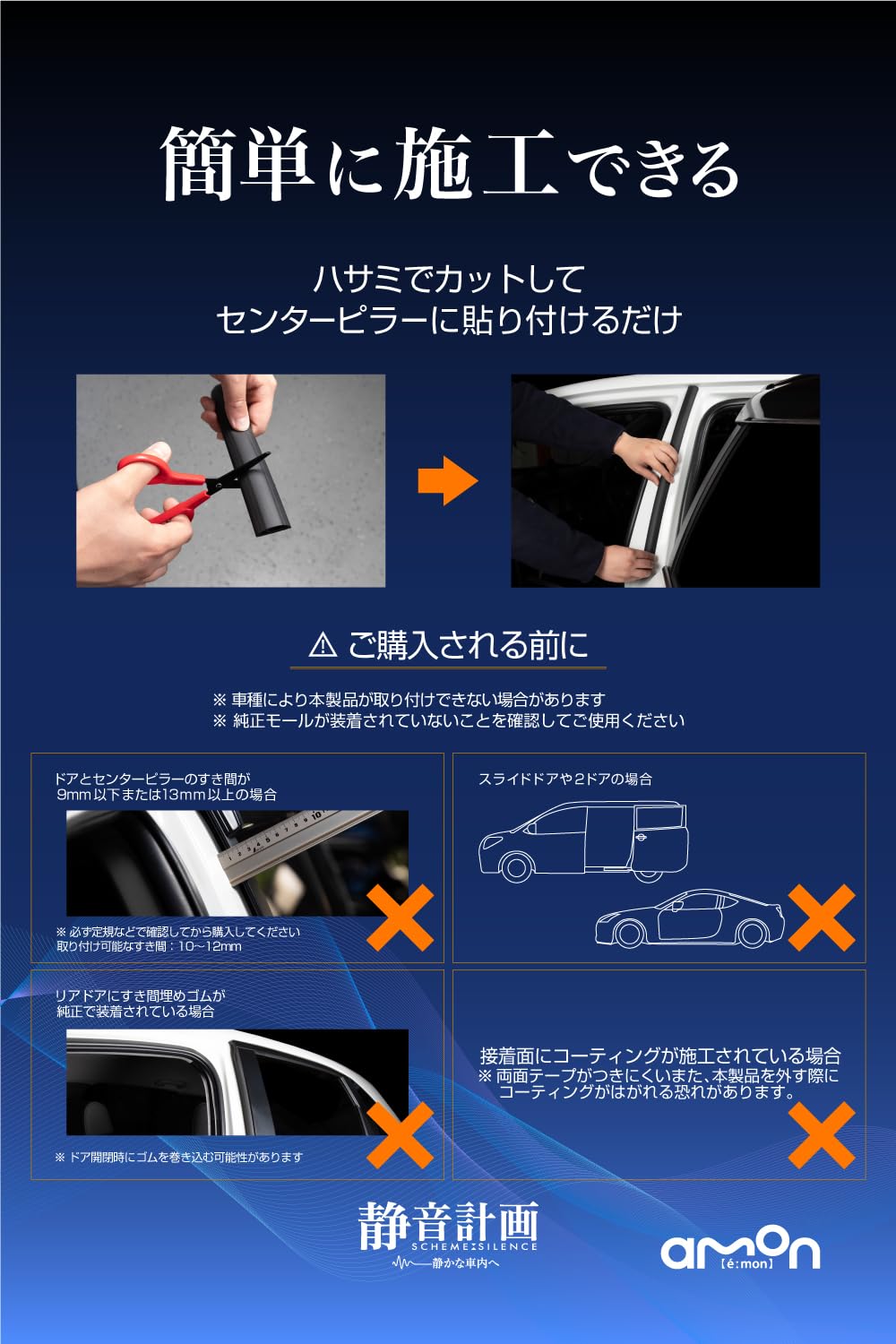 エーモン(amon) 車内を静かにする静音計画 風切り音防止モール ドア センターピラー用 約30mm×490mm×厚さ12mm 4820 ゴム 黒