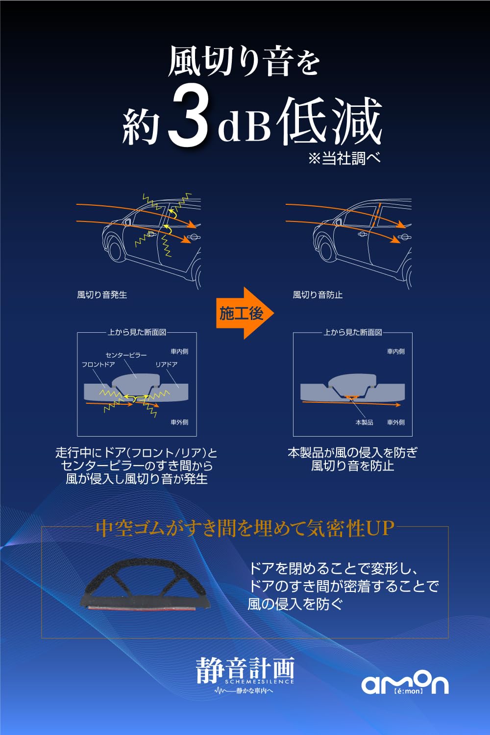 ■フロント・リアドア上部のすき間を埋めて風の侵入を抑える