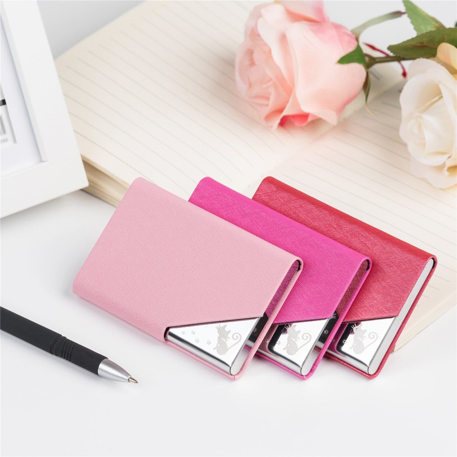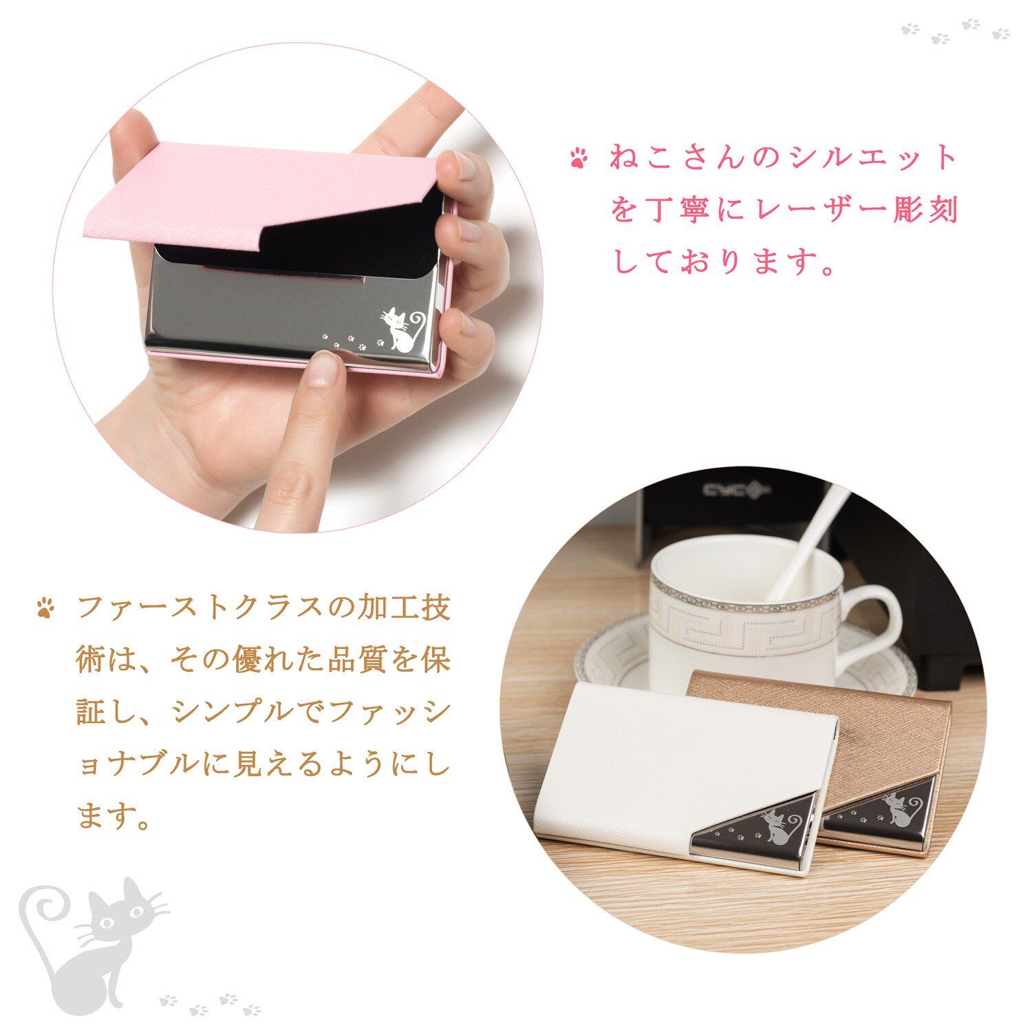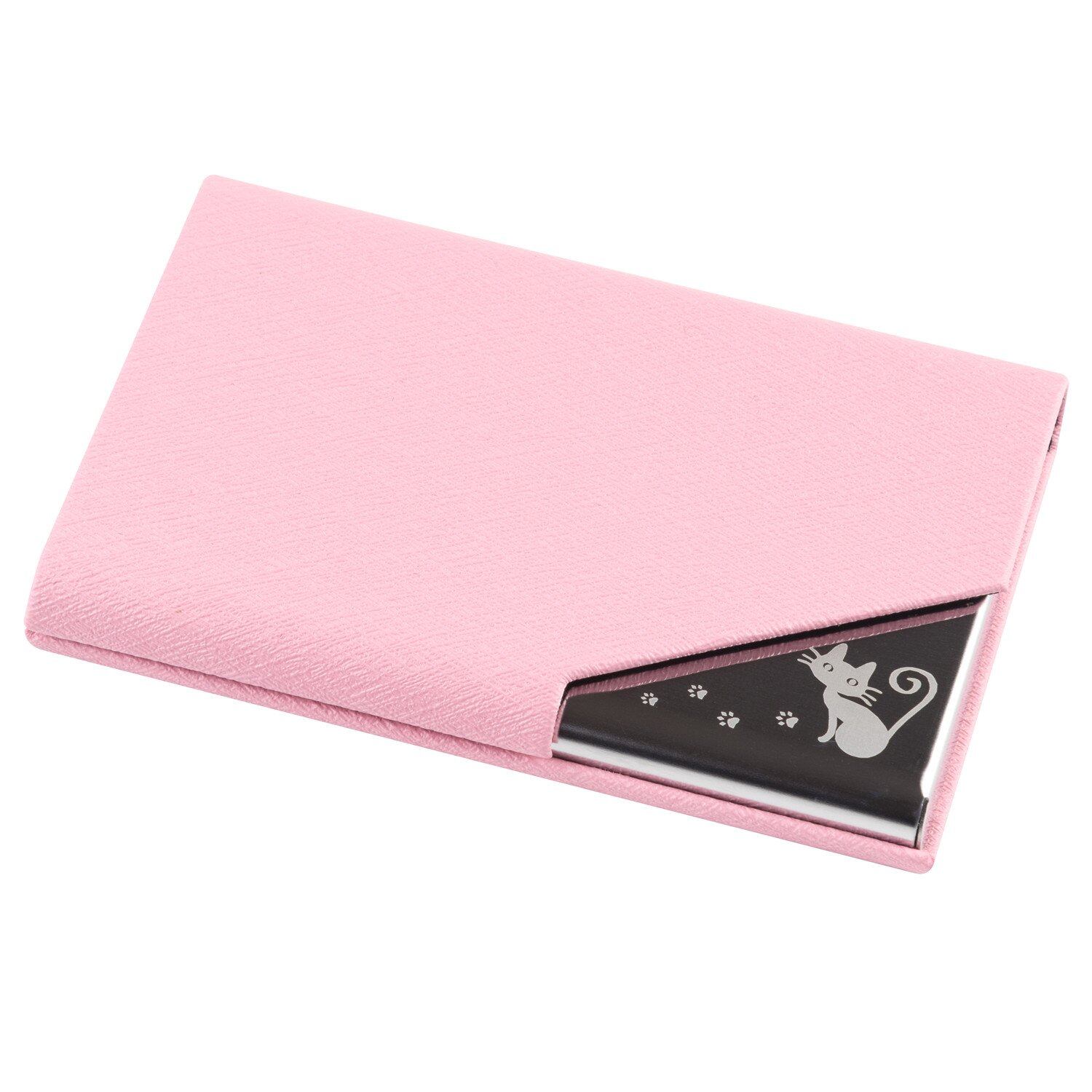 [Gumira] 名刺入れ メンズ レディース 選べる多色 名刺が折れない 専用の化粧箱が付き (ピンク, 猫)