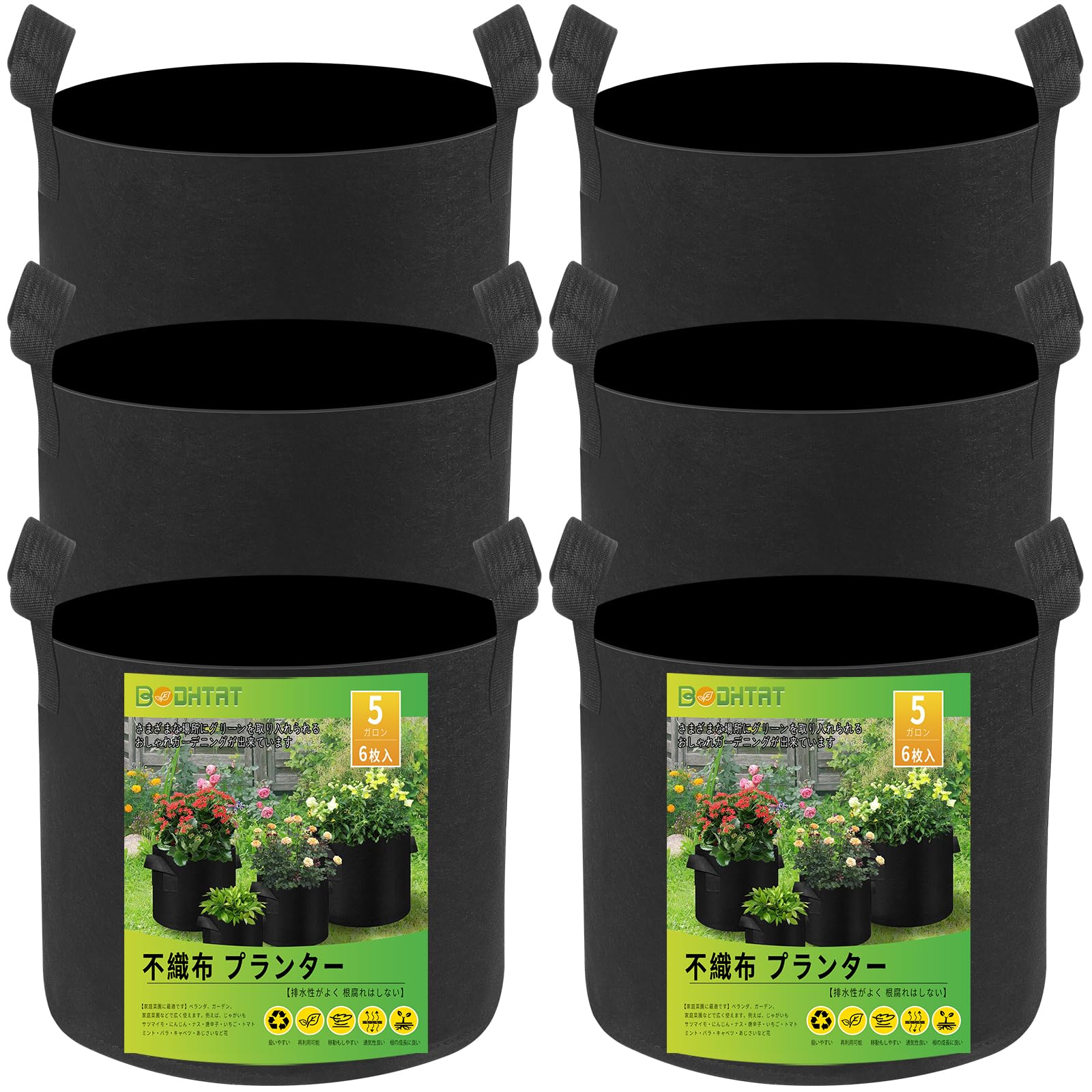 6個セット 不織布 プランター 5ガロン 栽培袋ポット 布鉢 厚くするフェルト 植え袋(直径30cm × 高25cm)園芸 植物育成 野菜栽培,家庭菜園に最適です-BODHTAT