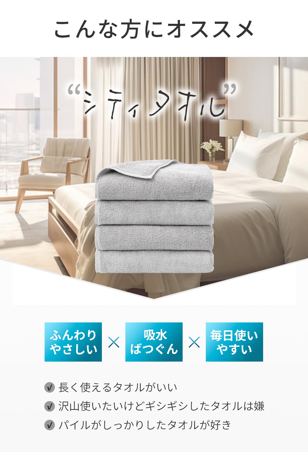 【敏感肌・赤ちゃんにも安心のやさしさ】繊細な肌を持つ赤ちゃんや敏感肌の方にも安心して使える設計です。タオルのパイルがしっかりしているため、横倒れしにくく、贅沢な使い心地を長く楽しめます。ゴワつきにくく、肌への摩擦を最小限に抑えることで、毎日の洗顔や入浴後のケアが心地よい時間に。
