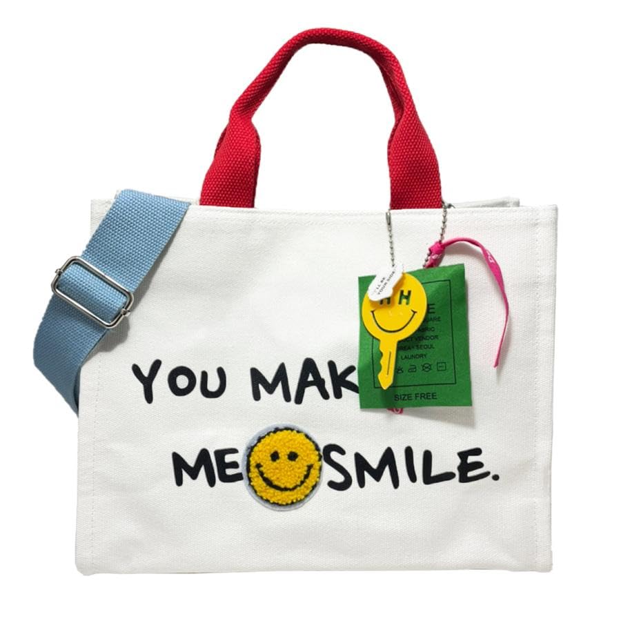 [DIVA Rose] トートバッグ 2way キャンバス ショルダー 斜めがけ スマイル 肩掛け コットン ランチバッグ 大容量 軽量 マザーズバッグ