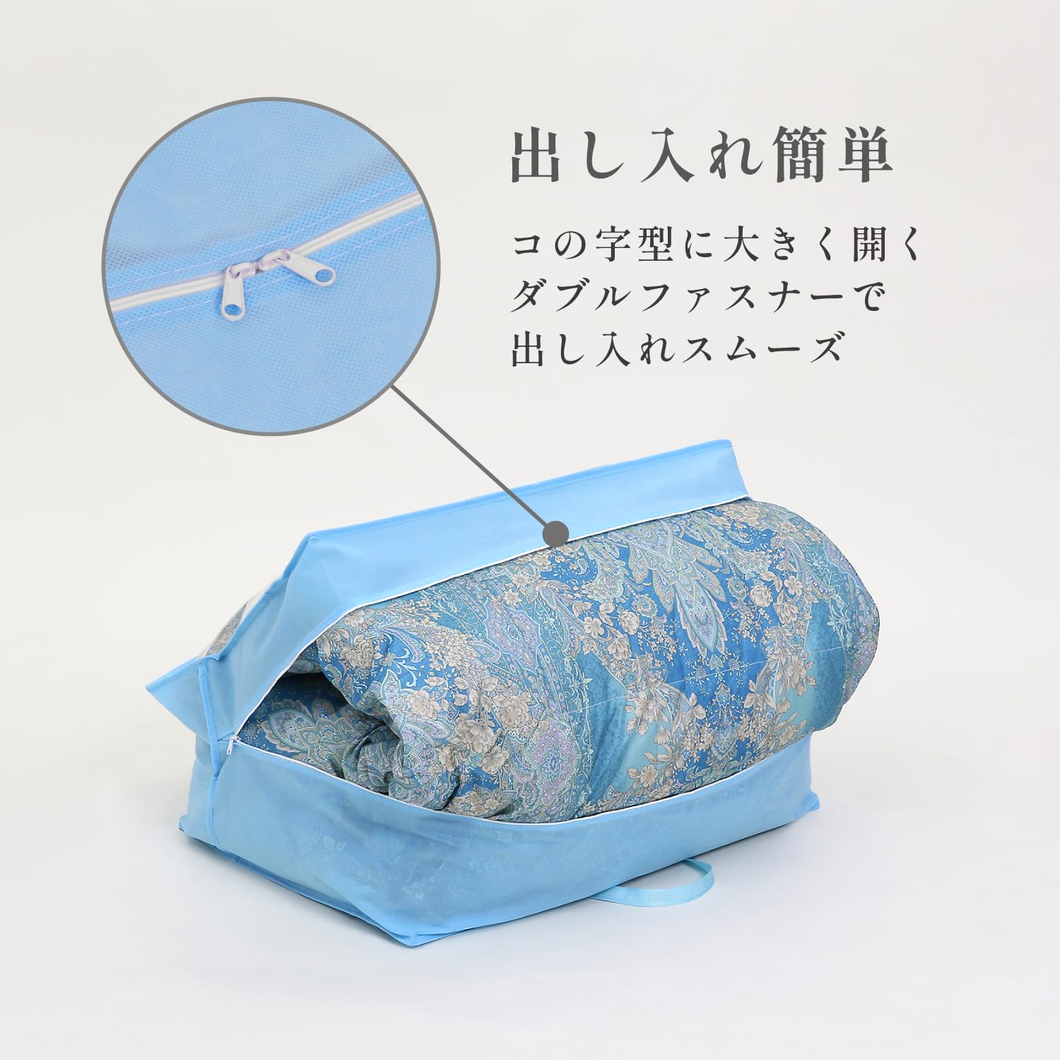 【商品名】羽毛布団収納袋(持ち手付き)青 102-12