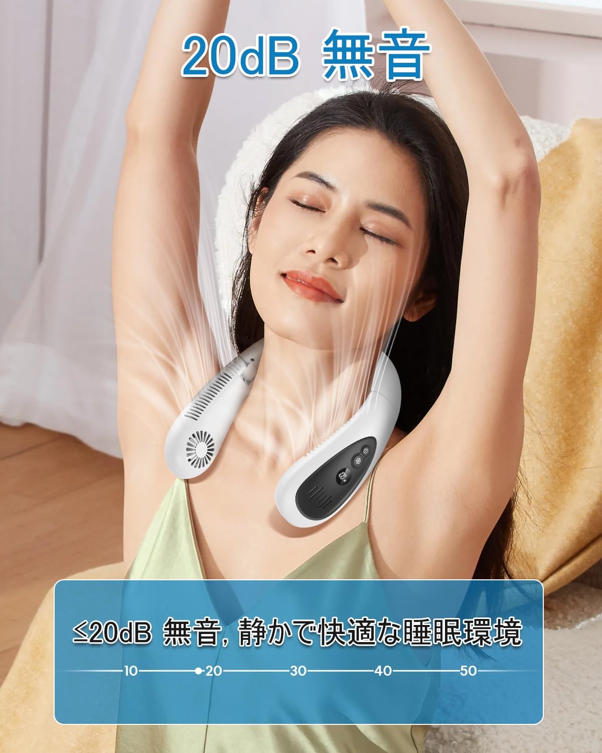 ????【三階段風量調整・LEDディスプレイ】3種類の調節可能な風量設定(弱風、中風、強風)が搭載されており、使用環境や個人の好みに合わせて風の強さを簡単に調節。ネッククーラーは従来のネックファンとは異なるデザインを採用しており、ネックファンにLED表示が追加されたことで革新的なアイデアがあります、いているため、モードや風量、バッテリー残量などが一目で確認できます。急に電池が切れて使えなくなる心配もなくなります。
