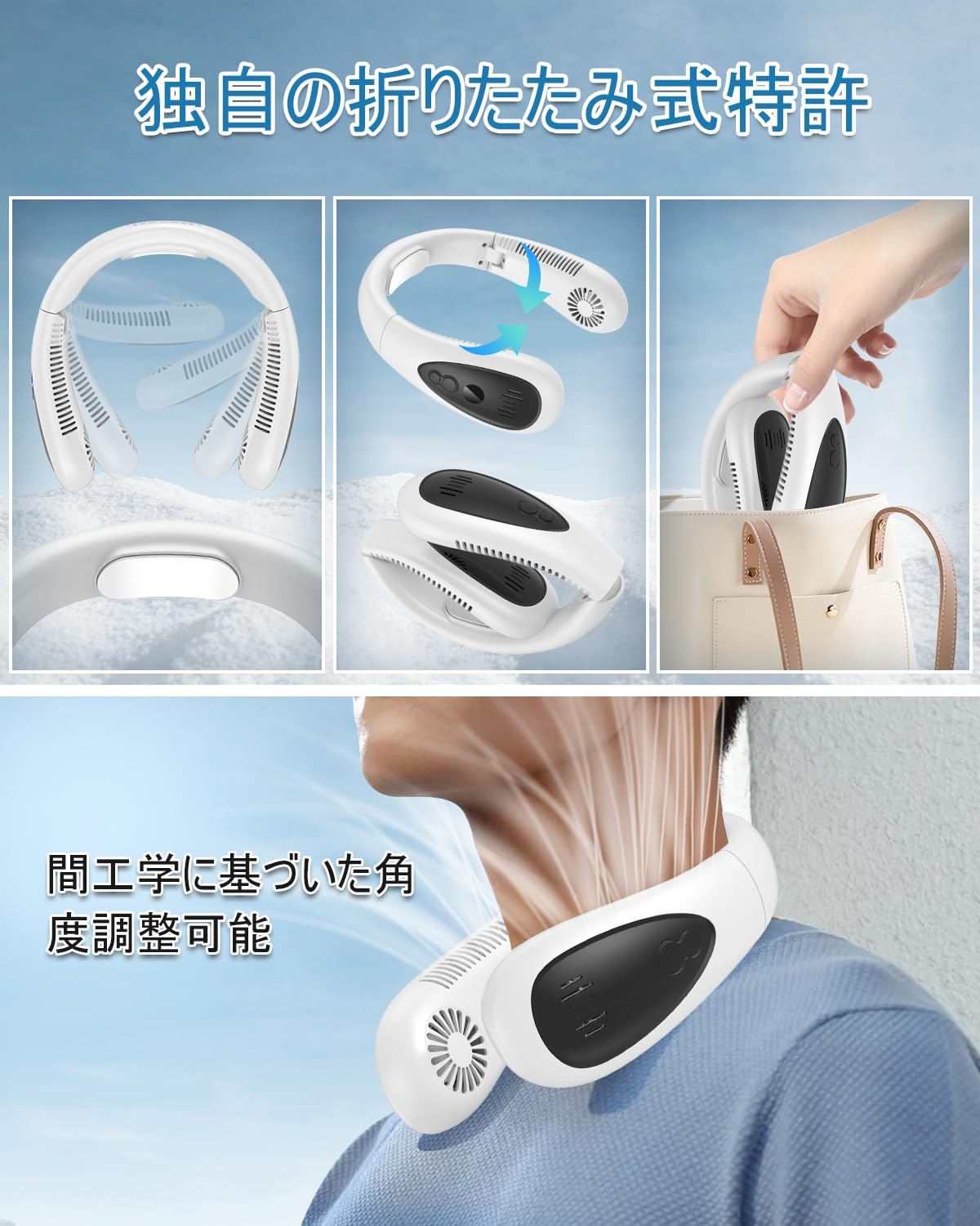 【特価処分】【2025世界的なヒット ネッククーラー 】首掛け扇風機ネックファン携帯扇風機 瞬間冷却5000mAh大容量 Type-C急速充電20時間連続使用羽なし風量3段階調節 LEDディスプレイマスク蒸れ対策グッズ 持ち運びやすい 折りたたみ式/作業/旅行/スポーツ/通勤/家事/最高のプレゼント