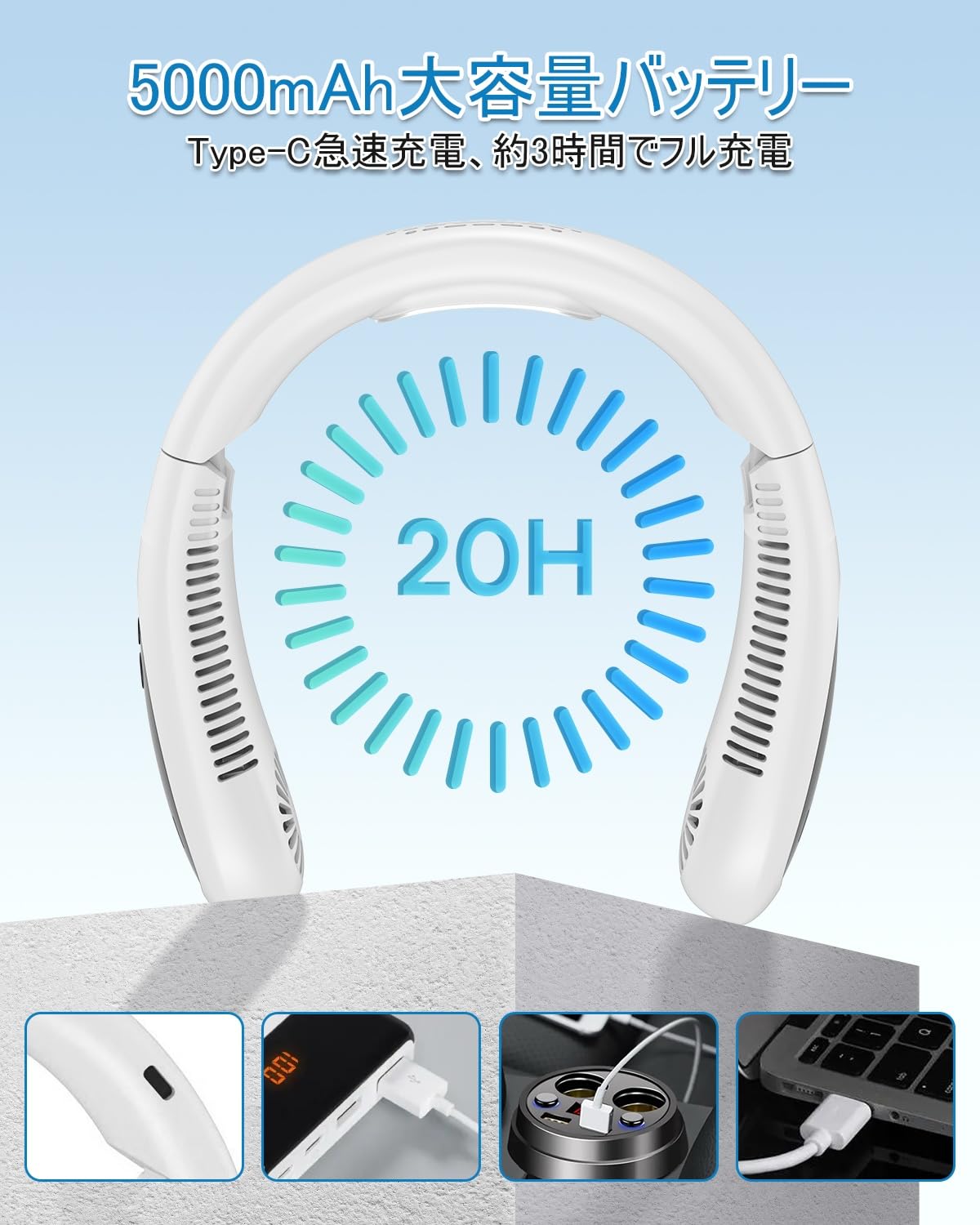 【2025世界的なヒット ネッククーラー 】首掛け扇風機ネックファン携帯扇風機 瞬間冷却5000mAh大容量 Type-C急速充電20時間連続使用羽なし風量3段階調節 LEDディスプレイマスク蒸れ対策グッズ 持ち運びやすい 折りたたみ式/作業/旅行/スポーツ/通勤/家事/最高のプレゼント
